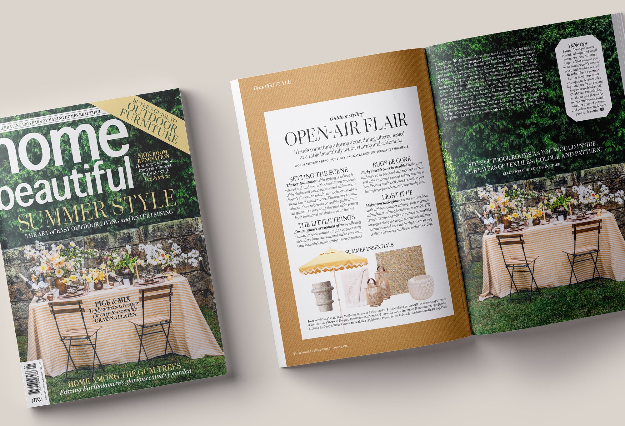 Our Le Portiv Lanterns are proudly featured in Open-Air Flair: Summer Essentials for Outdoor Styling – January's Home Beautiful! The article is written by Victoria Kingsbury and beautifully styled by Kayla Gex.