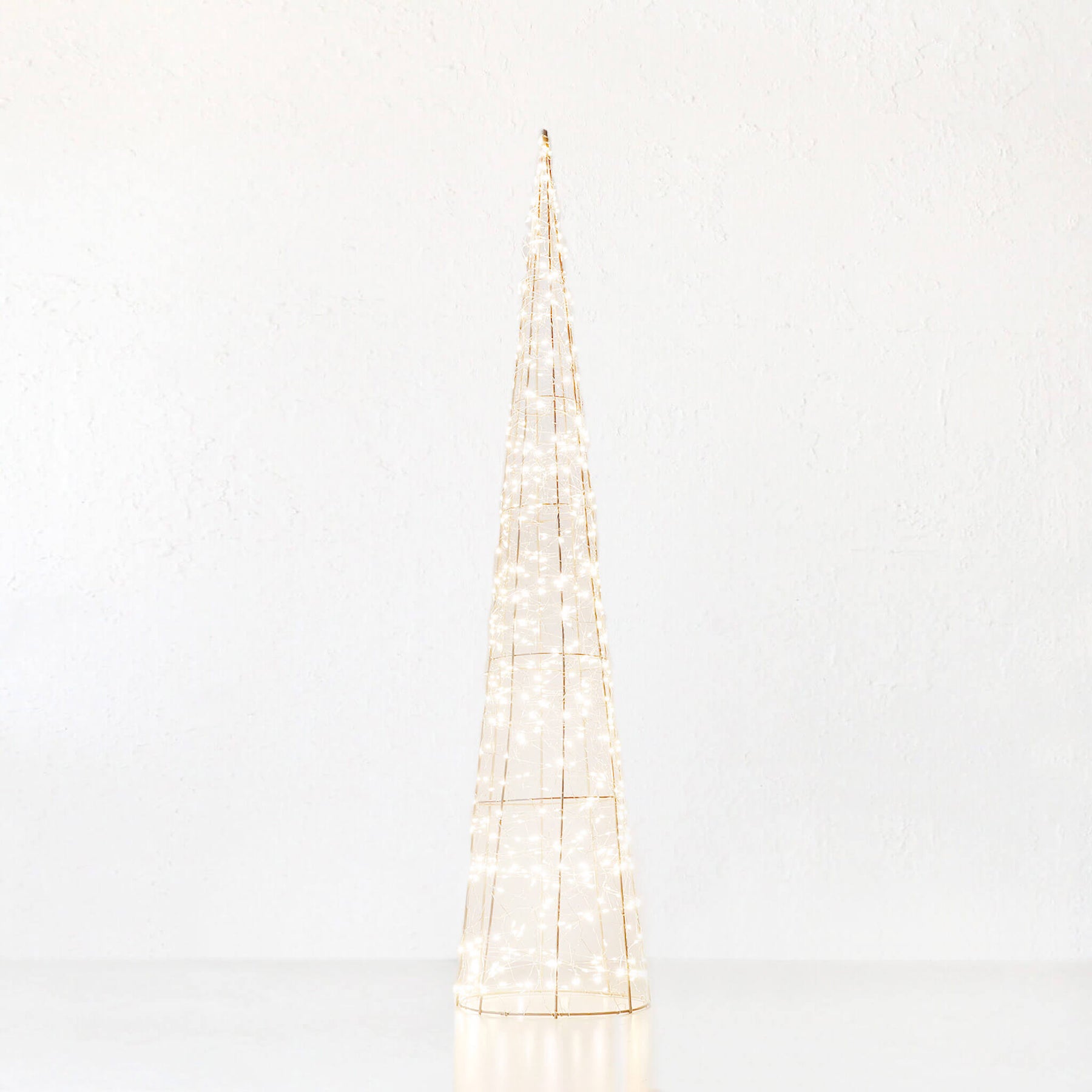 Bring a modern, glowing touch to your holiday season décor with the Centauri Illuminous LED Cone Christmas Tree. This elegant plug-in LED tree features a sleek gold-coloured metal frame adorned with warm, energy-efficient LED lights that illuminate beautifully.