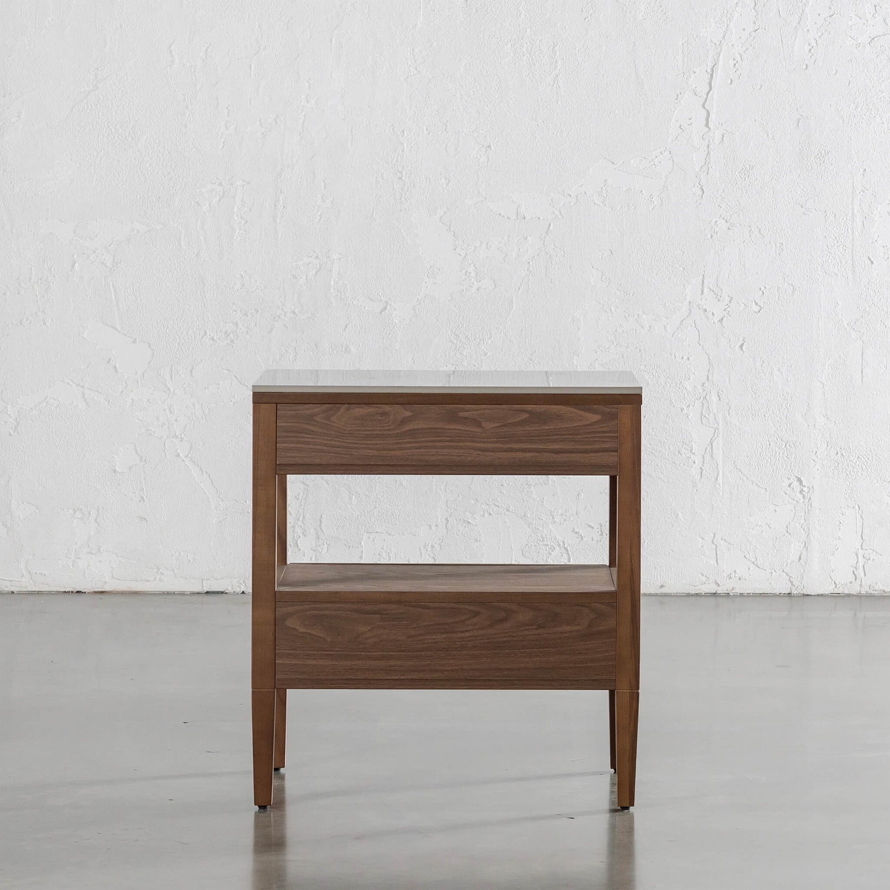 PERNEL CONRAD NIGHT STAND  |  DEEP WALNUT  |  VALENTINA GRIGIO CERAMICA TOP