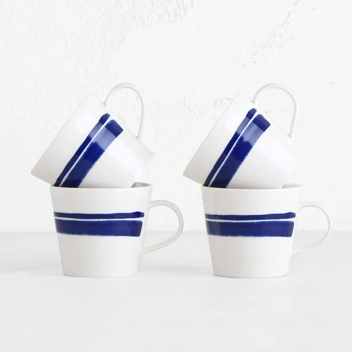 ROYAL DOULTON | PACIFIC MUG BUNDLE X4 | 400ML | WHITE + BLUE BRUSH