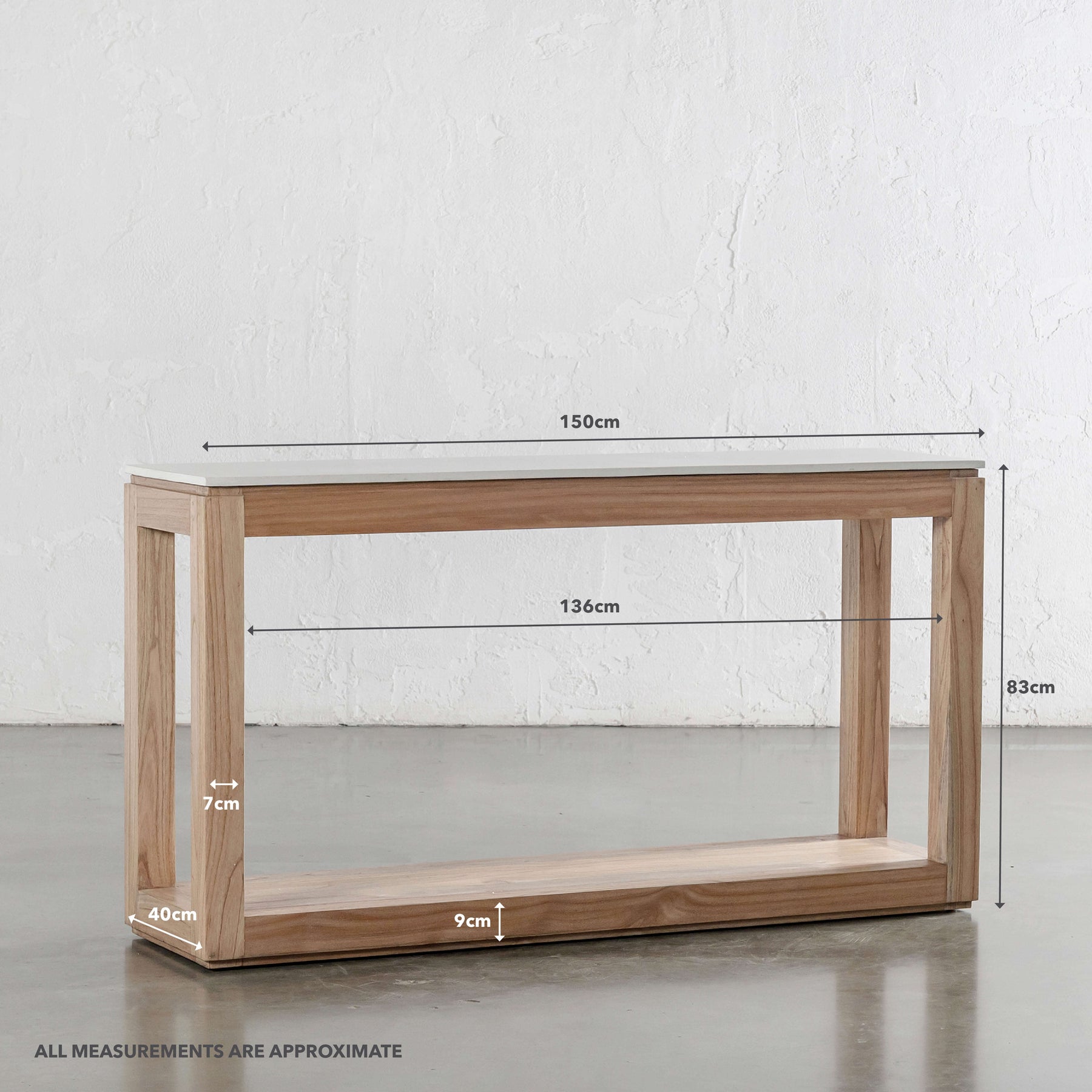 BASILIO CONSOLE TABLE | 150CM | NATURAL ASH + BIANCO CIMENT | MEASUREMENTS