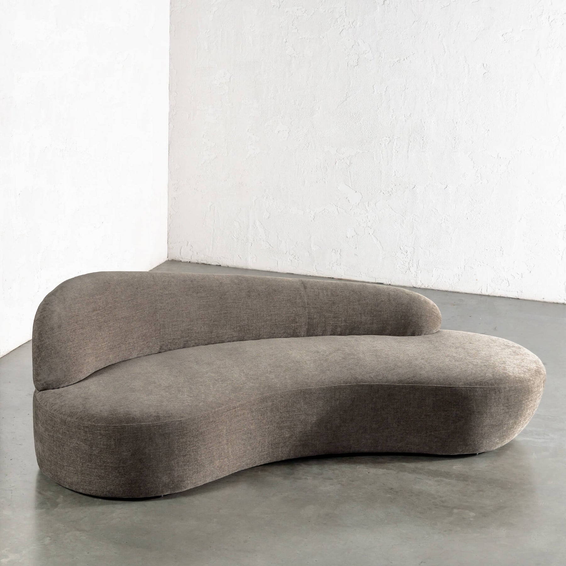 Sculptural and effortlessly inviting, the Loutro Day Sofa is defined by its low, elongated form and softly contoured lines. A gently sloping backrest introduces an element of asymmetry, creating visual interest while offering relaxed support for lounging or reclining. Upholstered in a tactile fabric, the Loutro exudes a quiet, natural elegance that complements its organic silhouette. The generous proportions and deep seat encourage moments of pause, whether styled as a statement piece or layered within a considered living space.