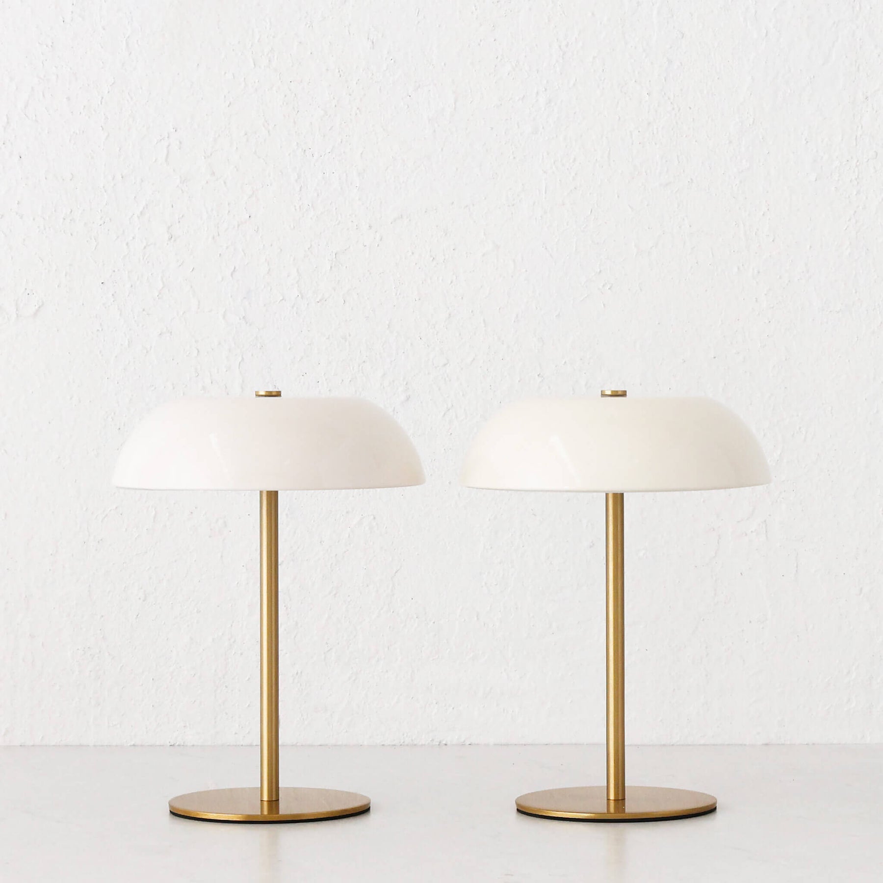 SAO MARTINHO DOME LED RECHARGEABLE INDOOR/OUTDOOR LAMP BUNDLE X2 | 21CM | OFF WHITE + ANTIQUE BRASS