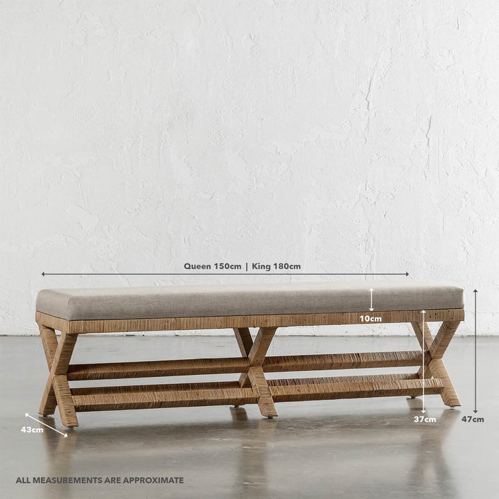 SAN AUGUSTINE RATTAN HERRING WEAVE | CROSS LEG BENCH | NATURAL RATTAN