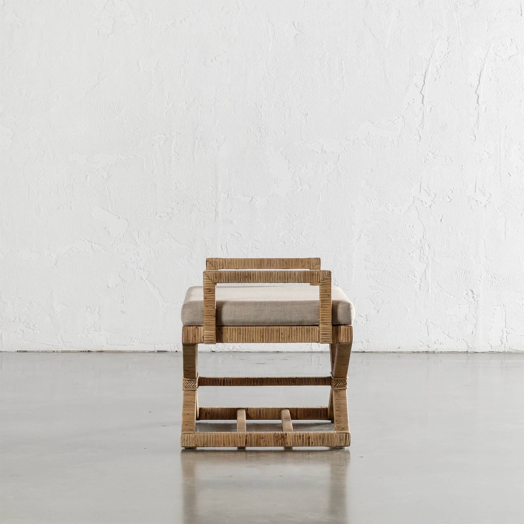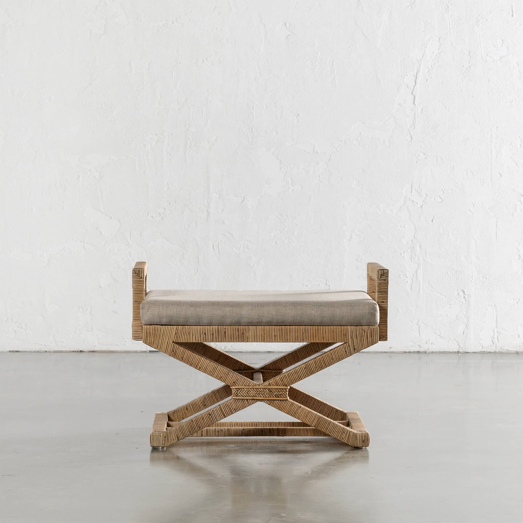SAN AUGUSTINE RATTAN HERRING WEAVE | CROSS LEG STOOL WITH PADDED SEAT | NATURAL RATTAN