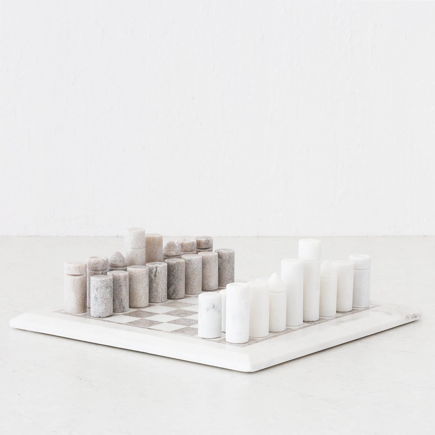 GAMBIT MARBLE CHESS SET | BEIGE + WHITE MARBLE