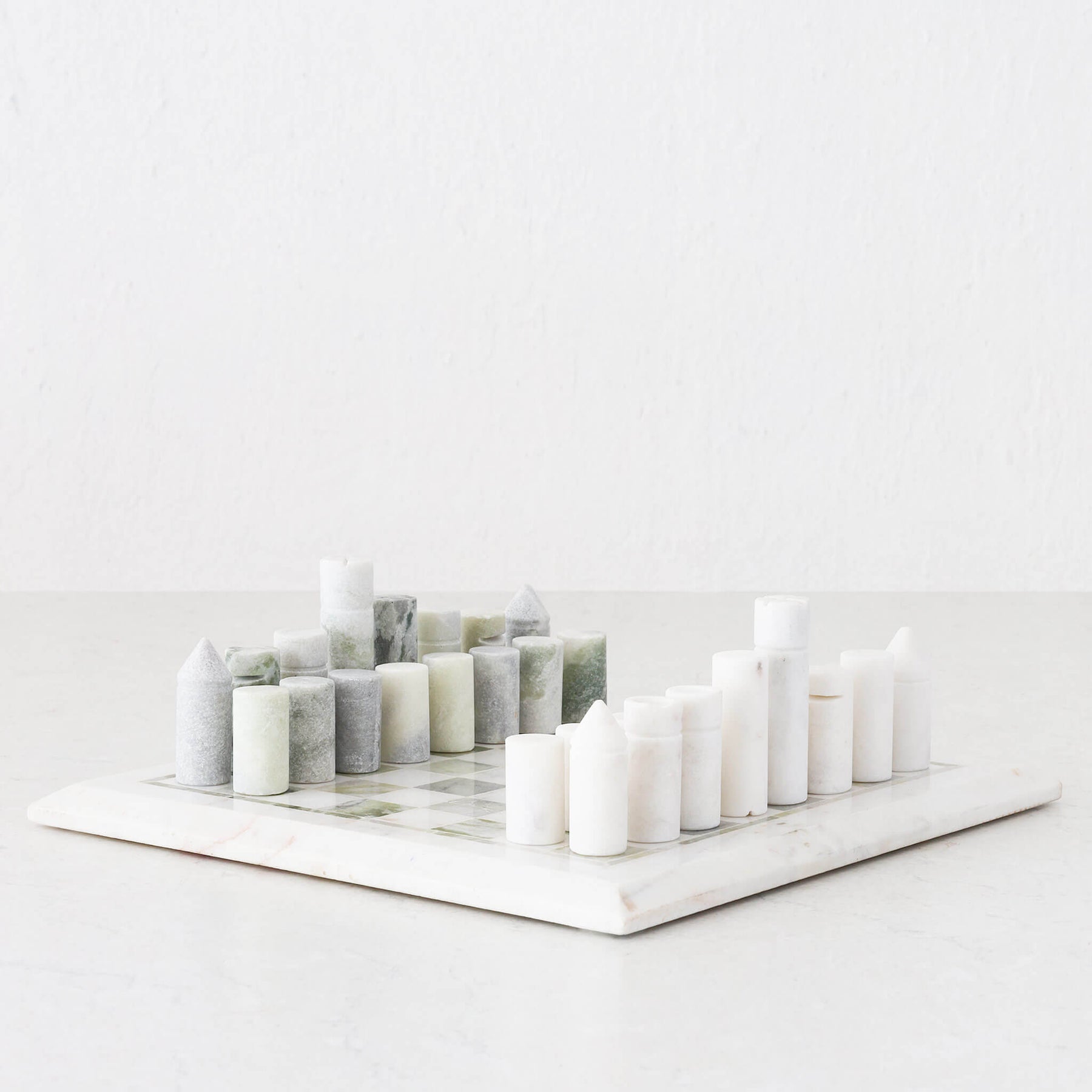 GAMBIT MARBLE CHESS SET  |  GREEN + WHITE MARBLE