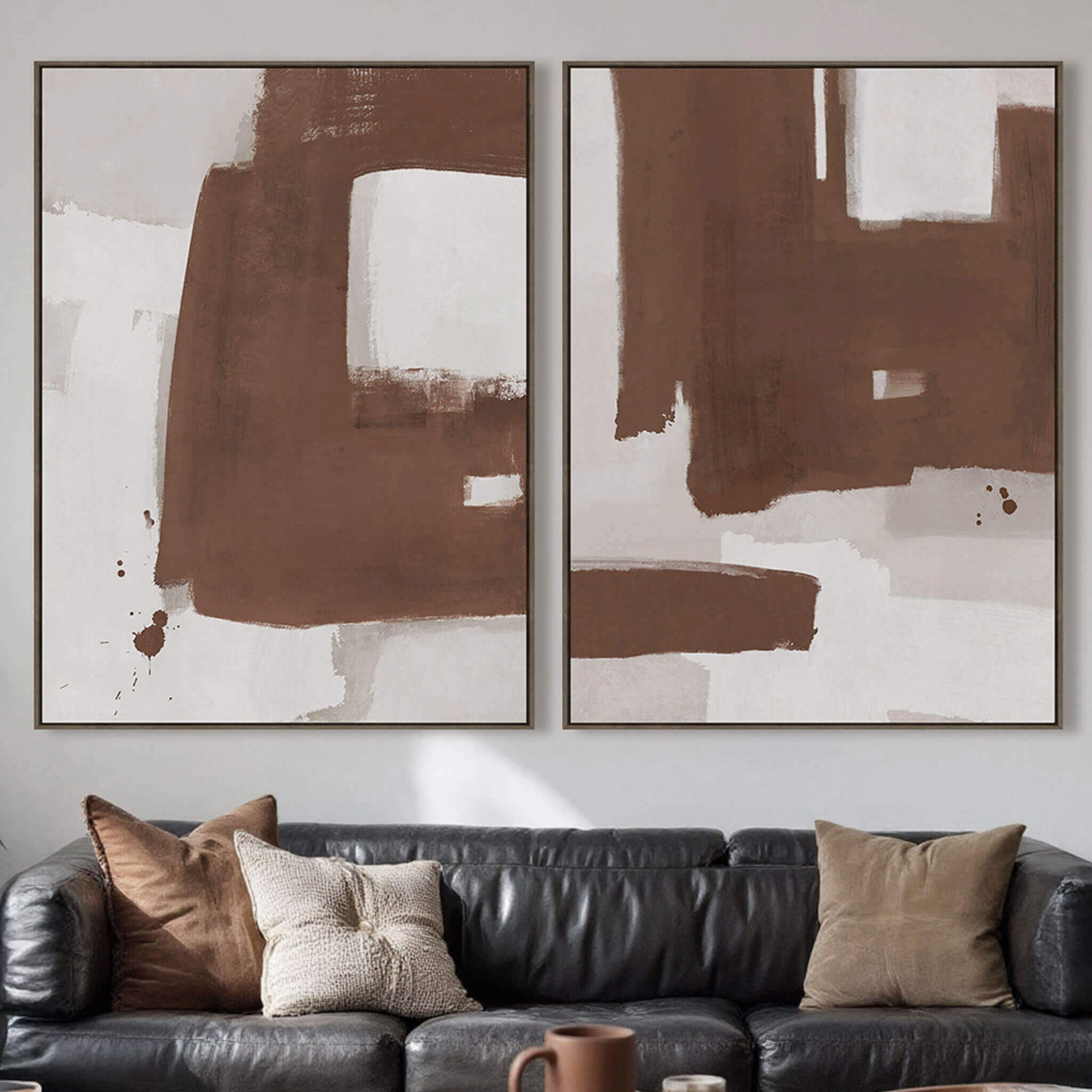 LBD EXCLUSIVE | OLTEN FRAMED CANVAS PRINT | SET OF 2 | 90X 120CM | RUST + NATURAL | OAK NATURAL FRAME