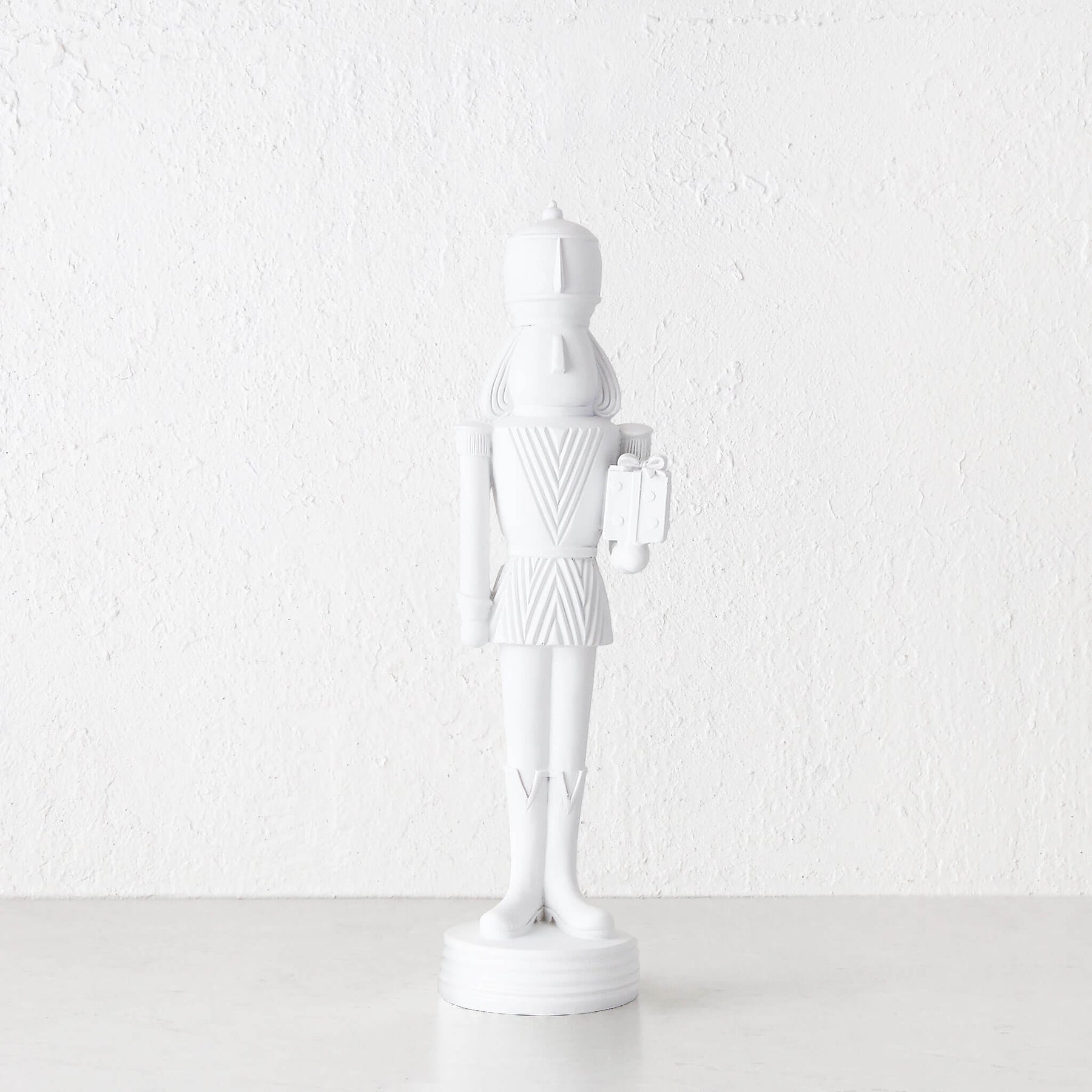 NUTCRACKER WITH PRESENT TABLE DECORATION | 39CM | WHITE RESIN