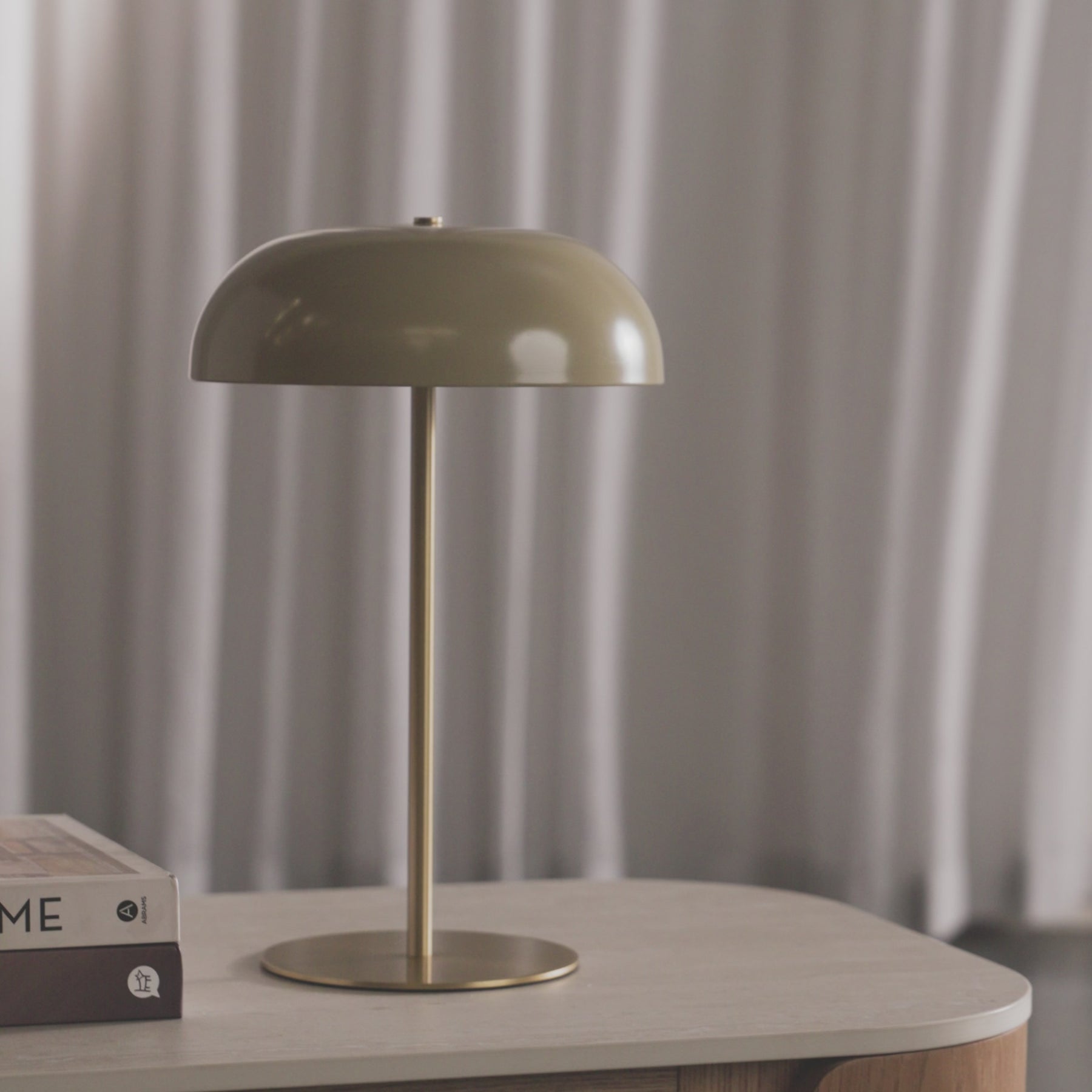 Introduce timeless elegance and modern functionality with the Sao Martinho Dome LED Indoor/Outdoor undercover Table Lamp. Featuring a sleek antique brass-coloured dome-shaped shade and metal base, this rechargeable LED lamp casts a warm white glow that perfectly balances style and convenience. Cord-free and easy to move, it brings soft ambient light to any corner of your home - perfect for bedside tables, living room accents + creating a cosy dining atmosphere.