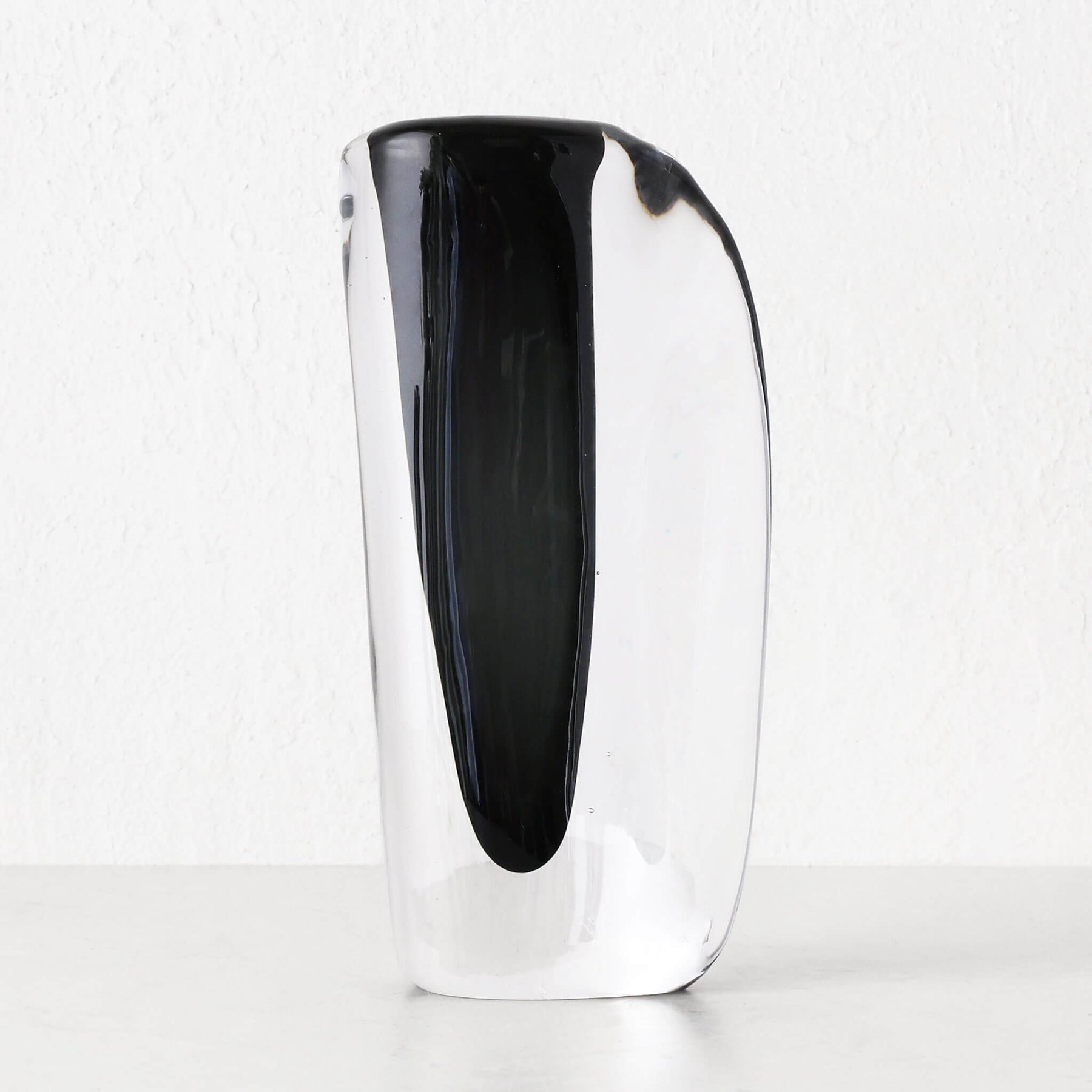 LIVING BY DESIGN EXCLUSIVE | JORG HAND BLOWN GLASS VASE | LARGE | CHARCOAL + CLEAR GLASS