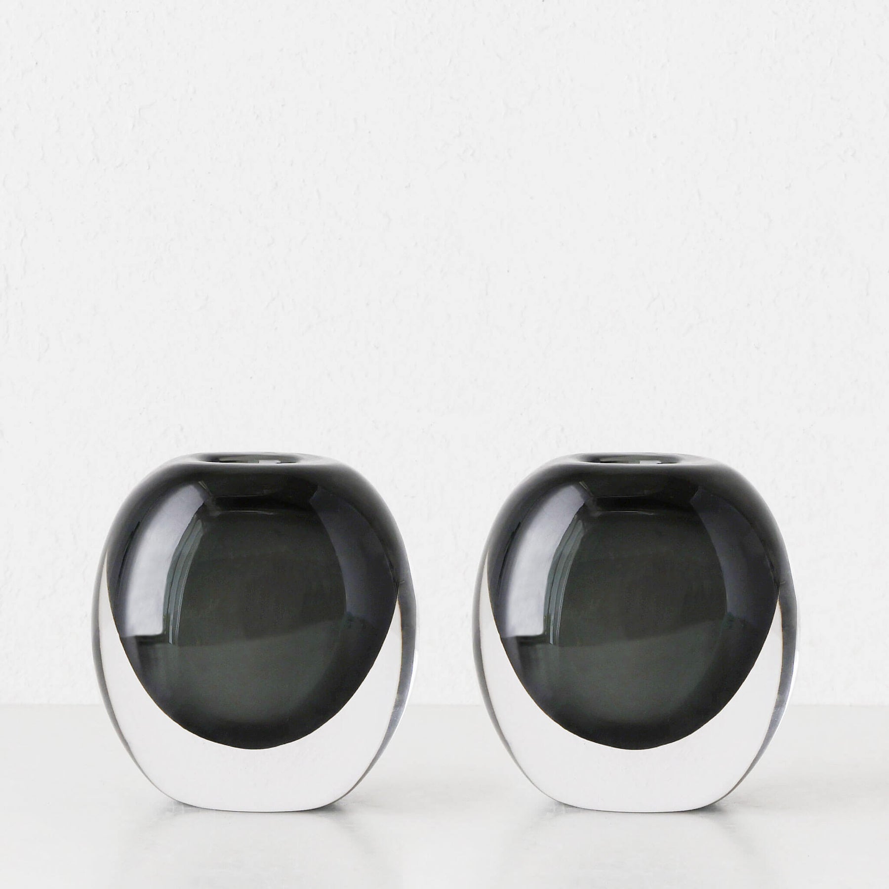 LIVING BY DESIGN EXCLUSIVE | HANS HAND BLOWN VASE BUNDLE X2 | CHARCOAL + CLEAR GLASS