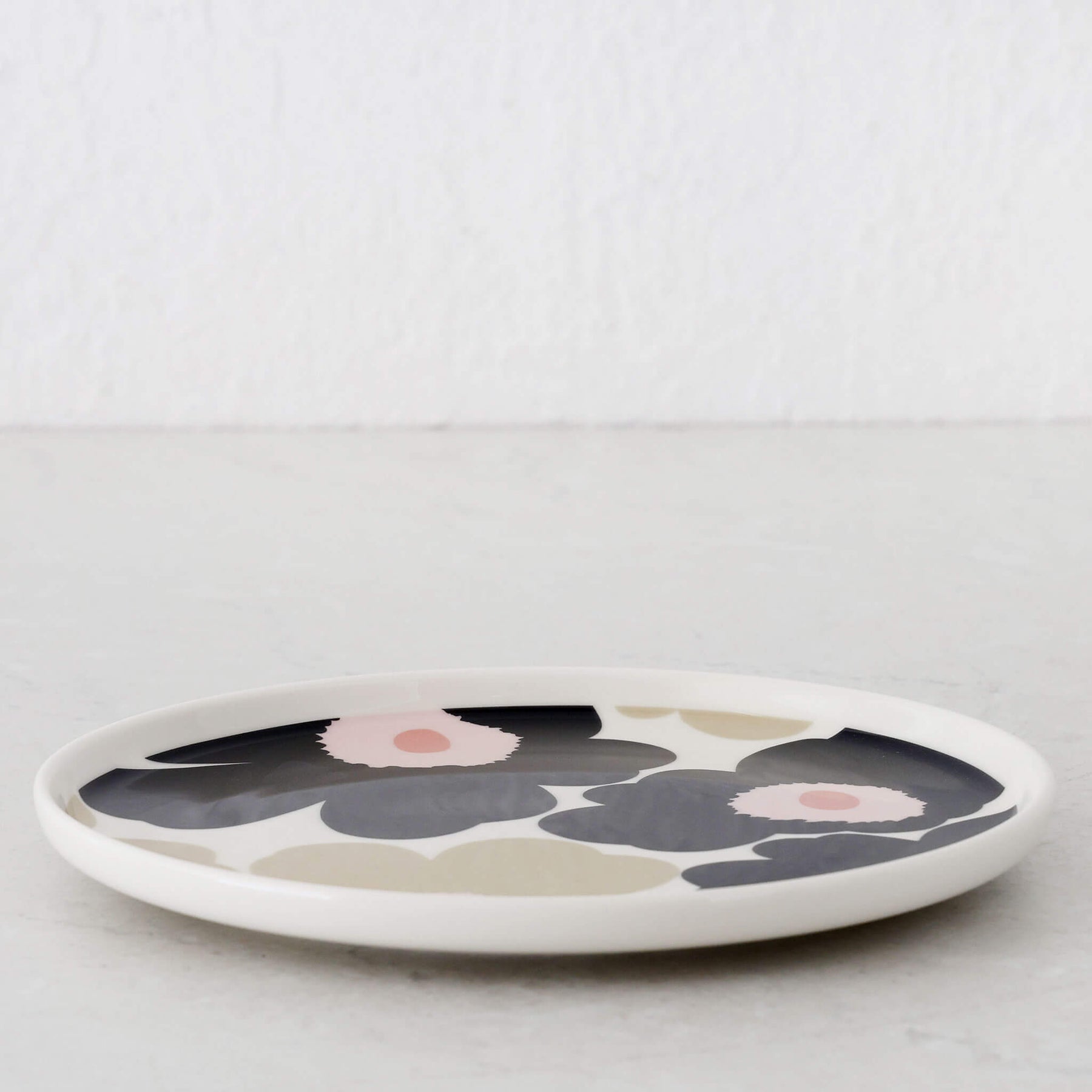 The Marimekko Unikko Oiva Plate 20cm brings a fresh touch of modern Scandinavian charm to your table setting. Crafted from durable white stoneware, this versatile plate is adorned with Marimekko’s iconic Unikko poppy print - a bold mix of deep charcoal blooms, soft blush centres + warm neutral accents. Designed for effortless everyday use, it pairs function with unmistakable style. Perfect as an everyday dining plate, a side plate, or a beautiful piece to showcase on open shelves.