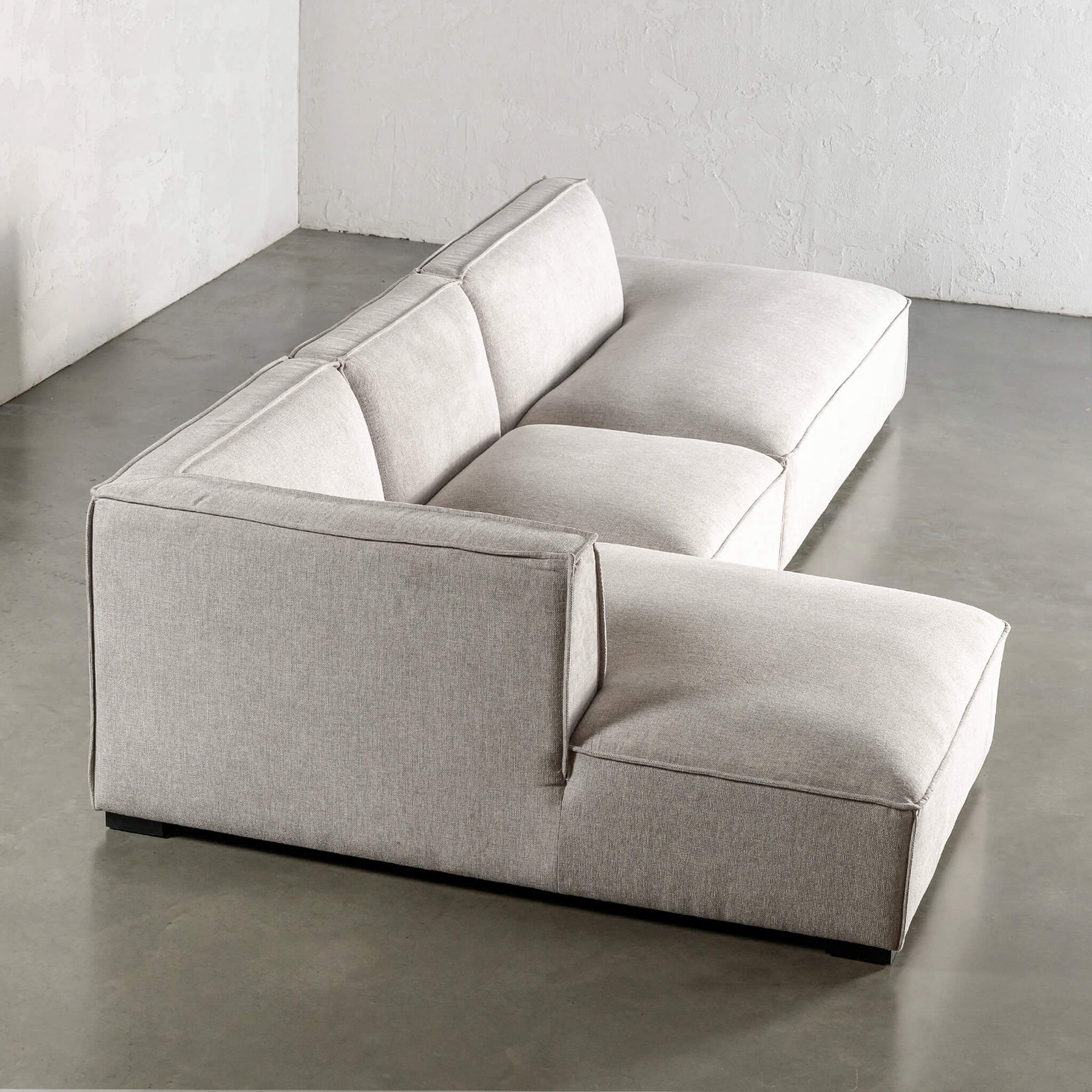 PLEASE NOTE RHS vs LHS : The modular is available in both a RIGHT ARM or LEFT ARM modular. The RIGHT ARM facing modular is that when you are facing the modular sofa, the chaise is on the RIGHT side of the sofa. LEFT ARM facing modular is that when you are facing the modular sofa, the chaise is on the LEFT side of the sofa. The photographed Provato Open-Ended Modular Sofa in Sandy Drift is the left arm facing modular.