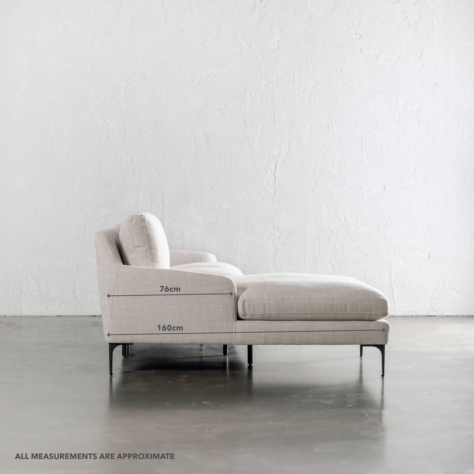 The Vittoria Modular Sofa Lounge is an upholstered hardwood frame, set atop sleek and airy carbon steel legs. The Vittoria range features soft feather backrest cushions, combined with firmer feather + foam seating. Plump back cushions + scatter cushions add an extra level of comfort. The tightly woven cotton + polyester blended fabric ensures durability. Available in our luxe hand-selected textured Chalkstone Weave + Watermark Grey woven fabric.