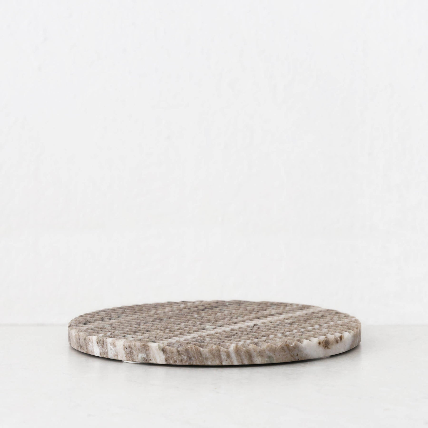 MARA MARBLE ROUND RIBBED TRIVET | 20CM | BEIGE MARBLE