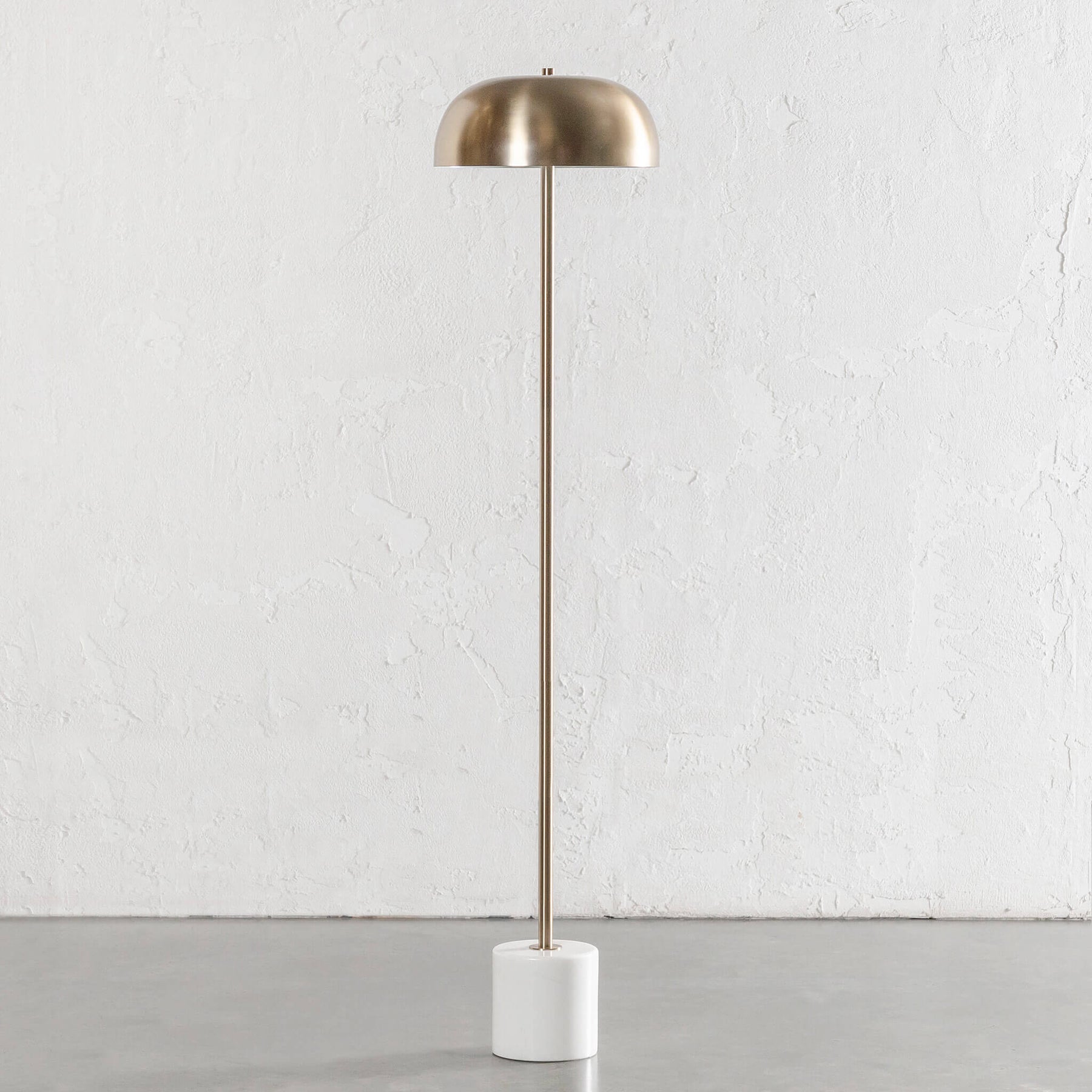 SAN LOURENCA MARBLE FLOOR LAMP | 150CM | ANTIQUE BRASS SHADE + WHITE MARBLE