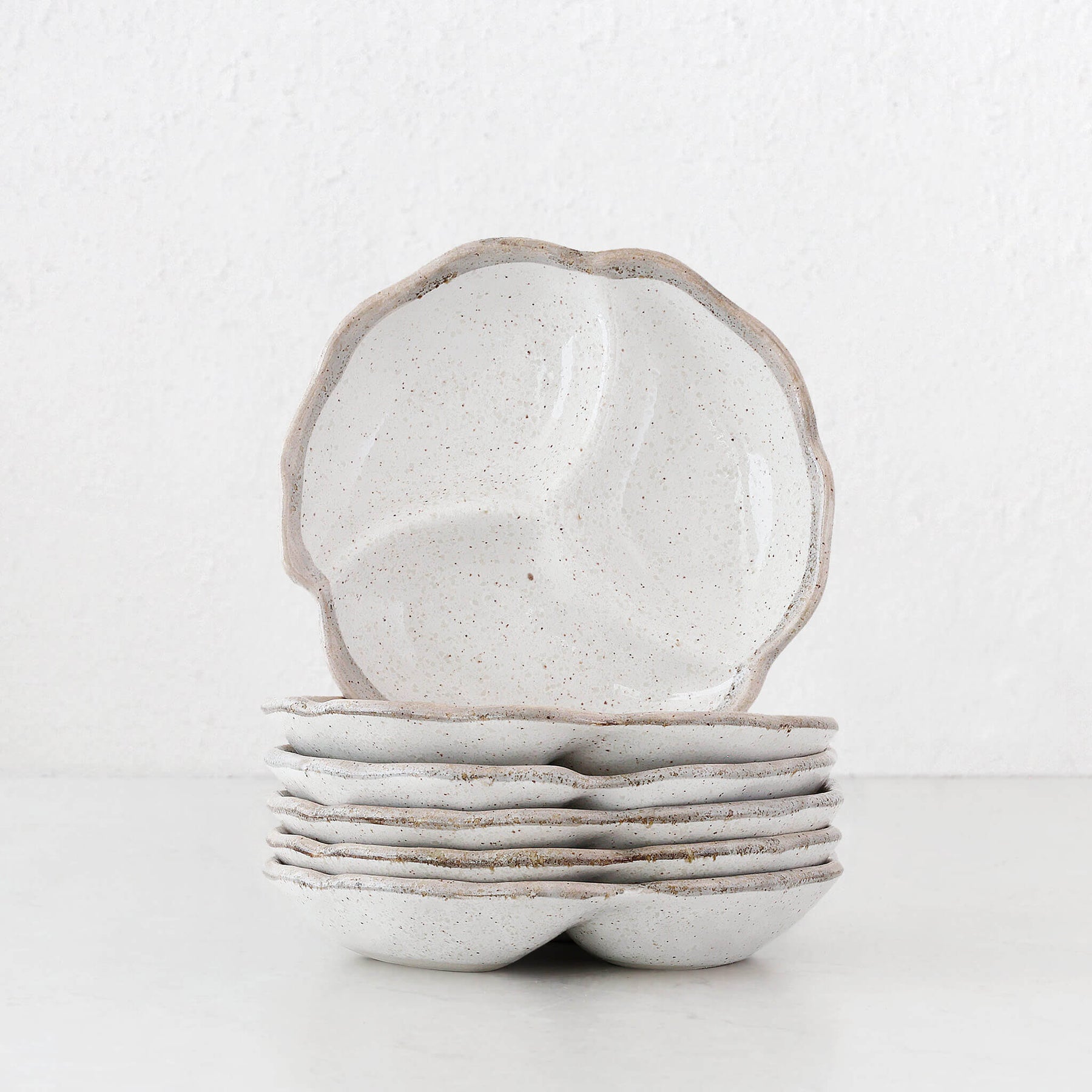 Introducing the Shirokaratsu Small Trio Dish from Concept Japan's stunning Shirokaratsu collection. With its neutral palette, this party platter dish effortlessly complements any interior styles and table settings. Crafted with a textured, speckled glaze, it offers a tactile and visually appealing experience.