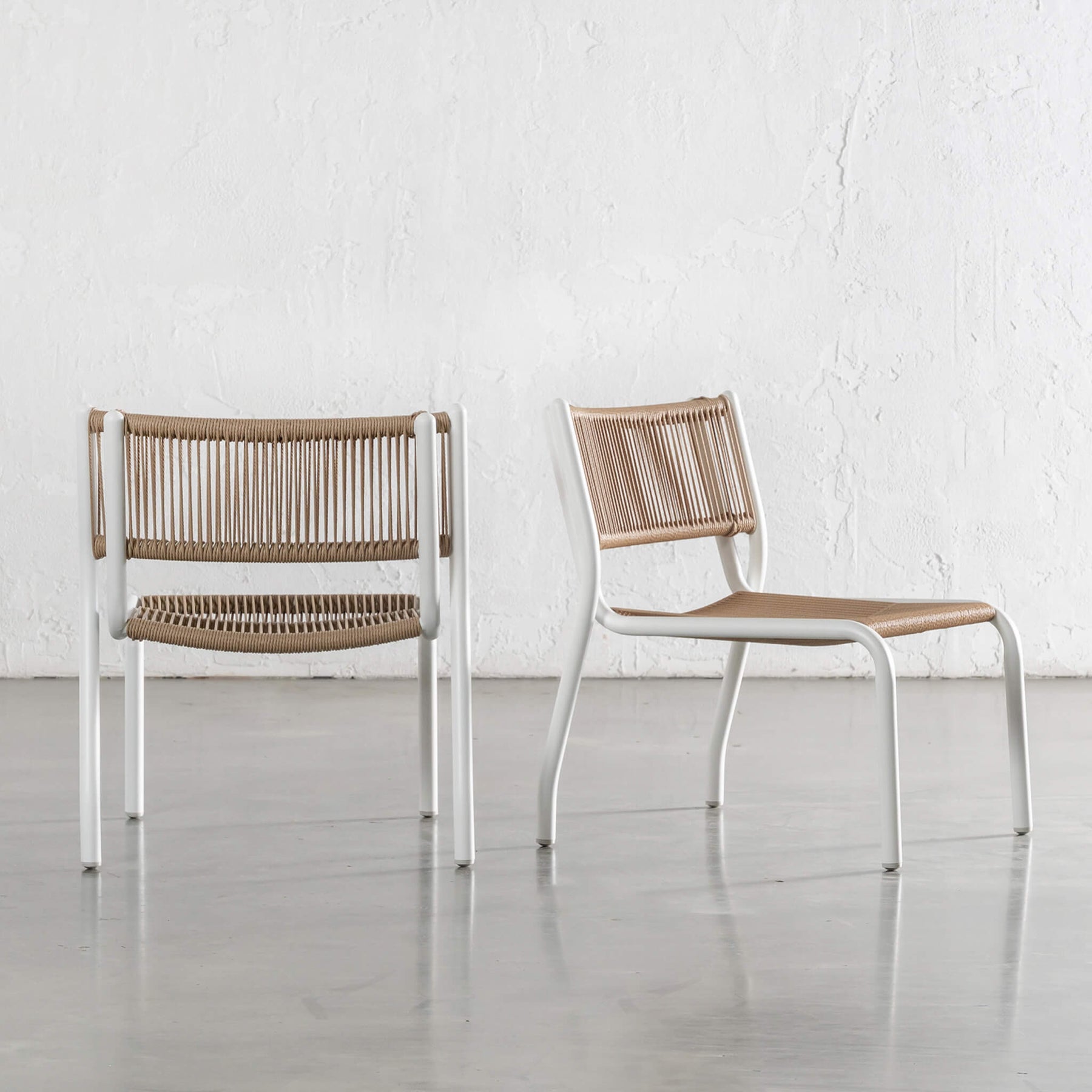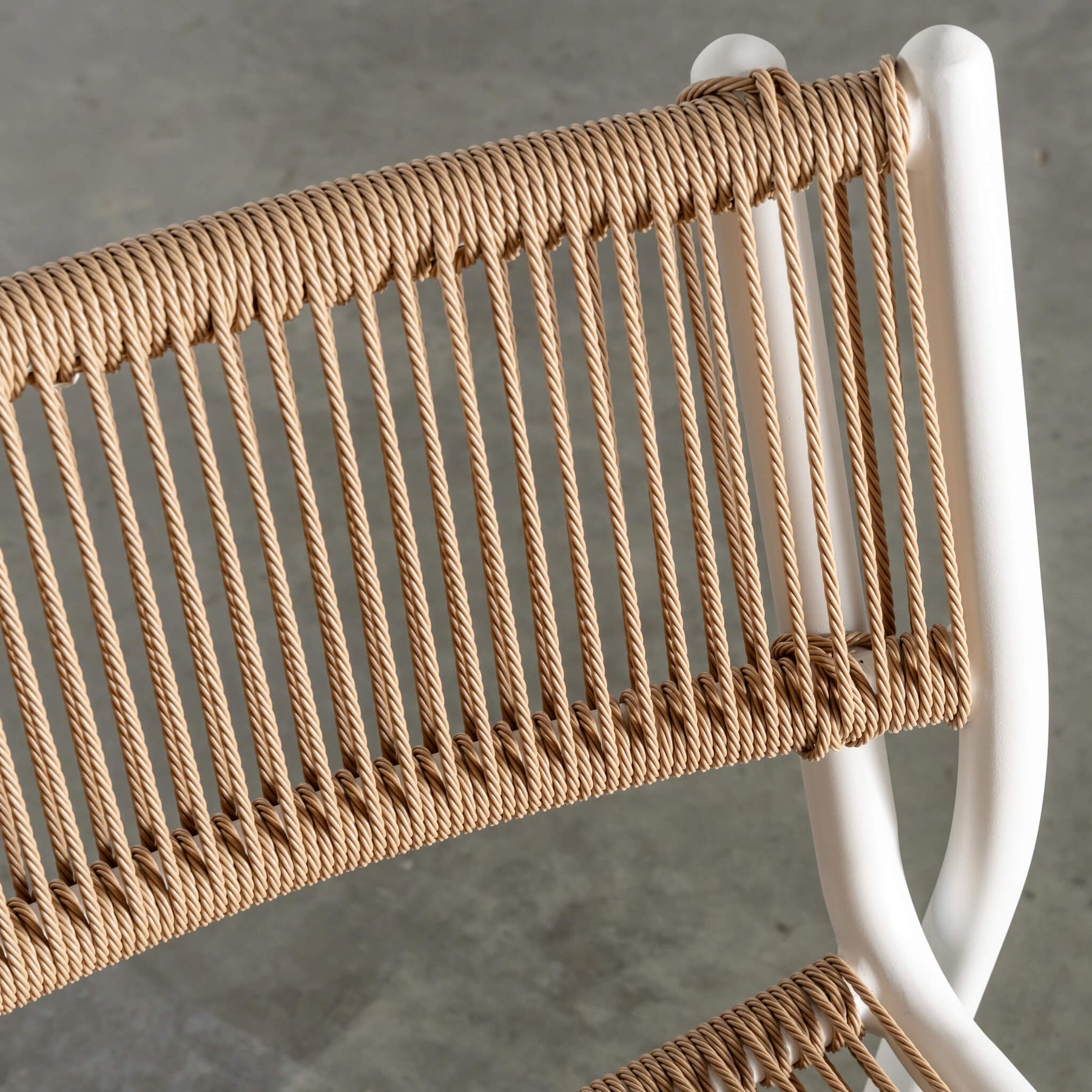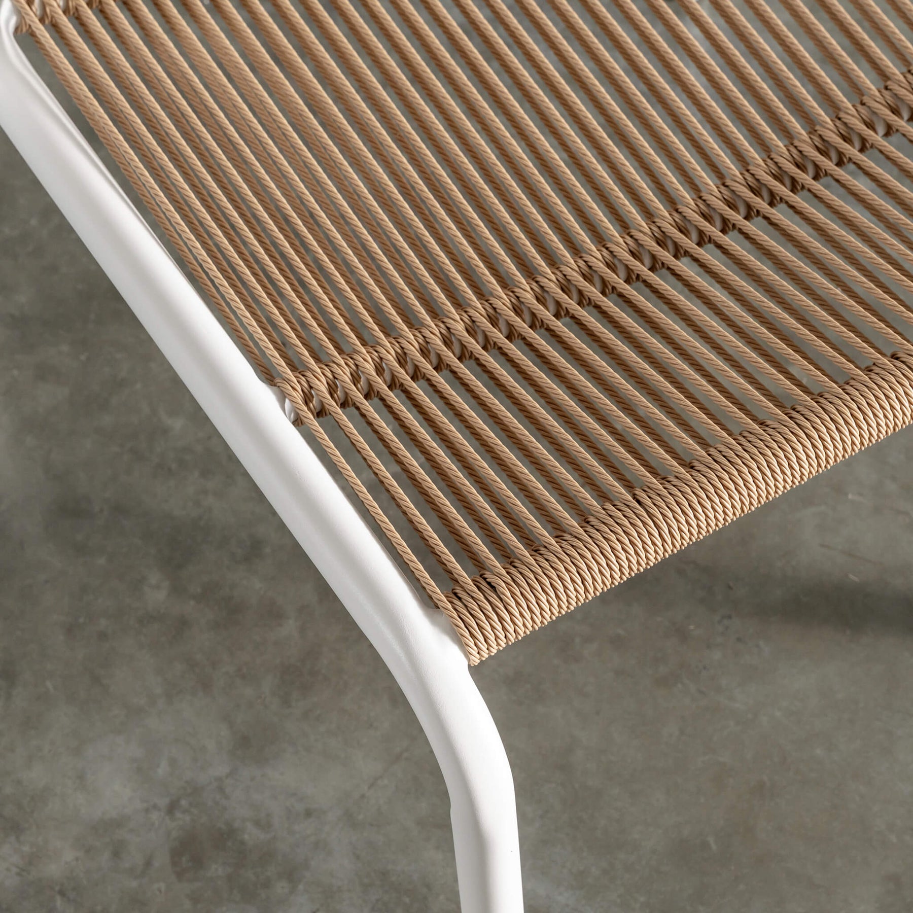A considered reinterpretation of classic woven outdoor design, the Piscina range celebrates texture, balance + proportion. The sleek, powder-coated aluminium frame is lightweight yet durable, creating a streamlined silhouette that enhances the organic character of the rope inspired seat + backrest. Designed for undercover outdoor settings, the rust-resistant frame and resilient woven detailing offer longevity without compromising on style.