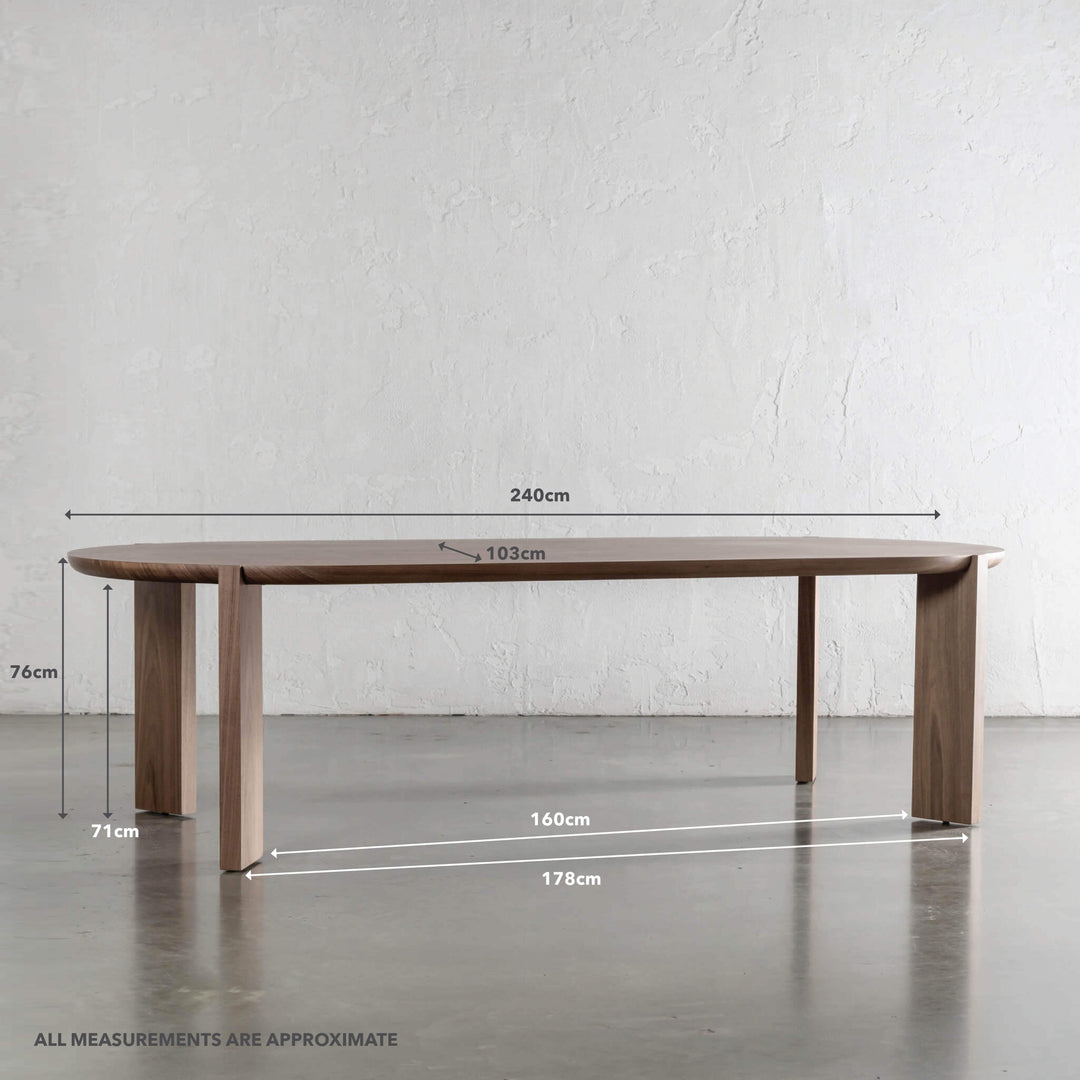 CASSAN ROUNDED DINING TABLE | DEEP WALNUT WOOD GRAIN | 240CM