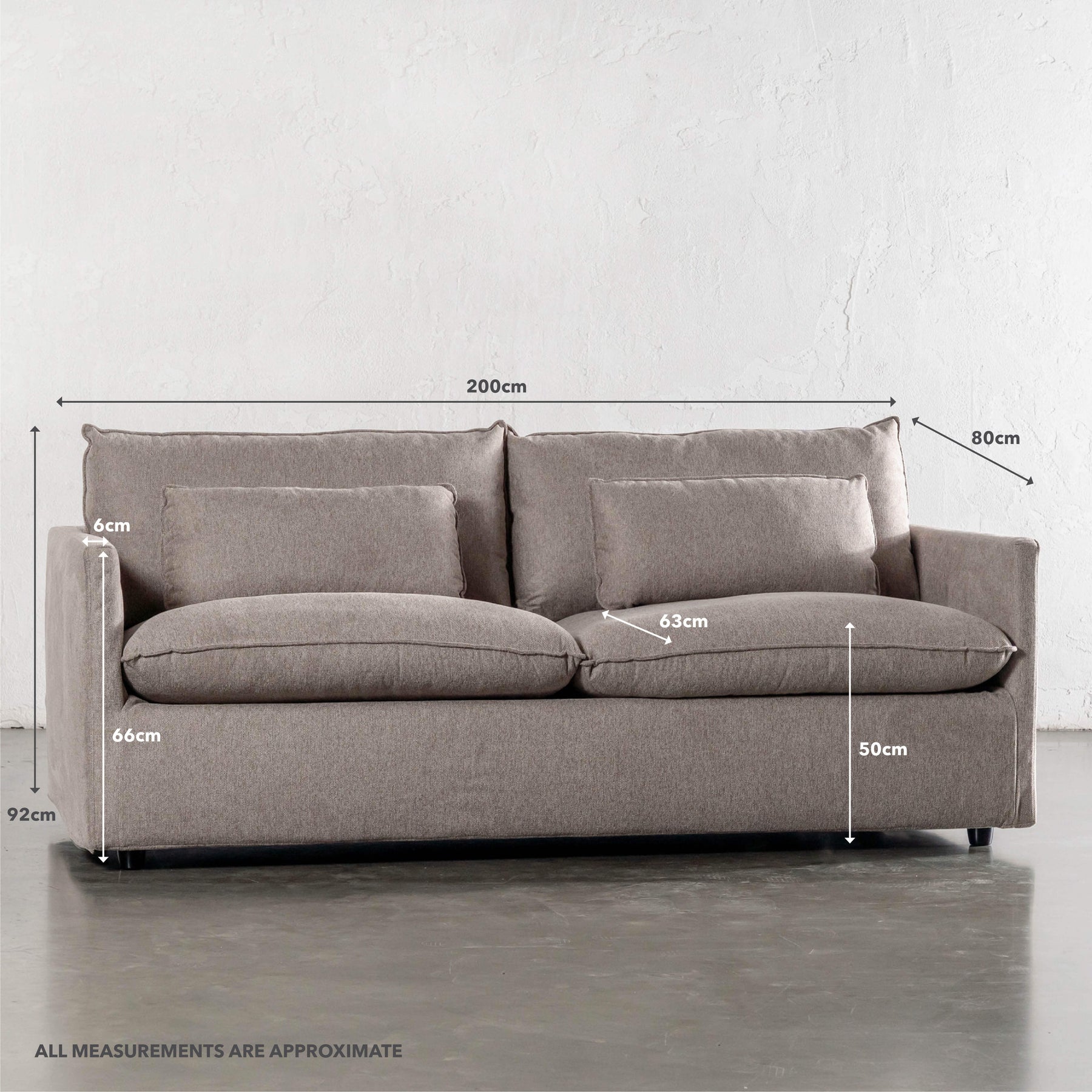 Approximate dimensions of the Piloti Breman 3 Seater Sofa Bed -
