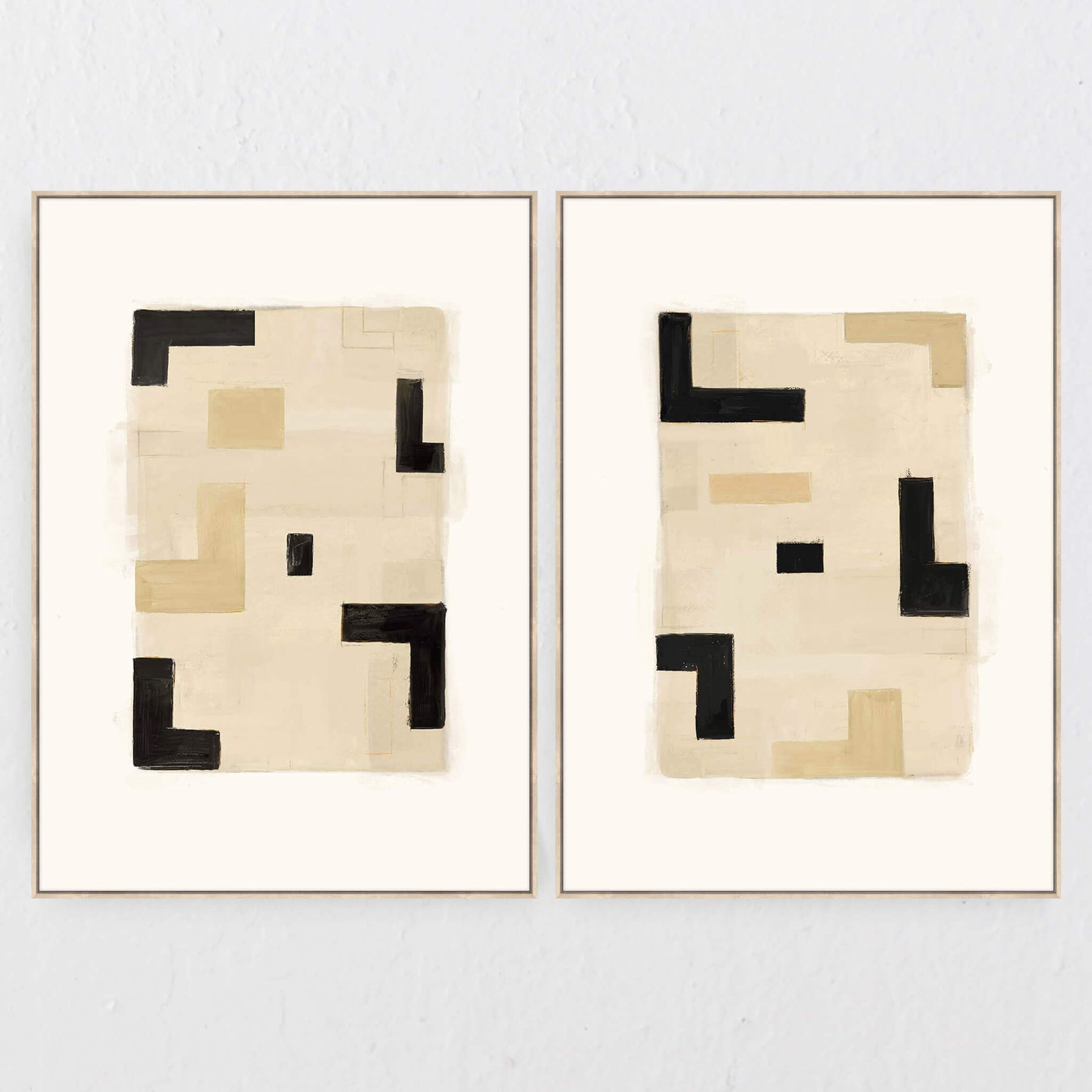 LBD EXCLUSIVE | CREMONA FRAMED CANVAS PRINT | 100X140CM | SET OF 2 | BLACK + SAND + BEIGE | LIGHT NATURAL FRAME