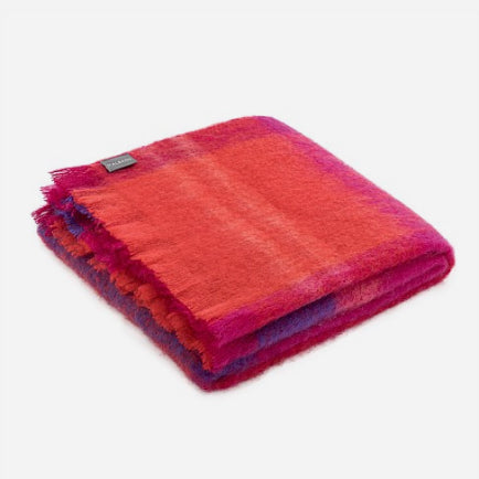 The St Albans Charlotte Mohair throw features blocks of poppy red, magenta, a touch of orange and a stripe or two of vivacious blue. This bright and cheerful throw offers beautiful vibrancy to your decor