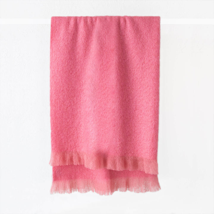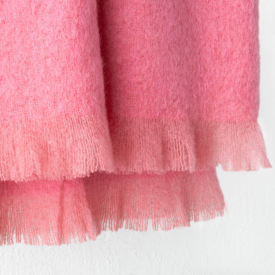 The camellia pink color of the Rose Mohair throw is both vibrant and soothing. It embodies the delicate beauty of blooming flowers and captures the essence of romance and charm.