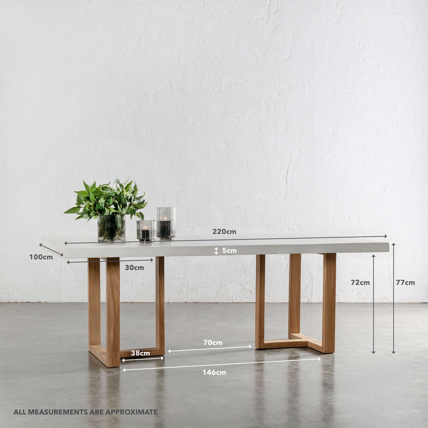 ARIA HALMSTAD DINING TABLE | BIANCO CIMENT + TEAK LEGS | 220CM
