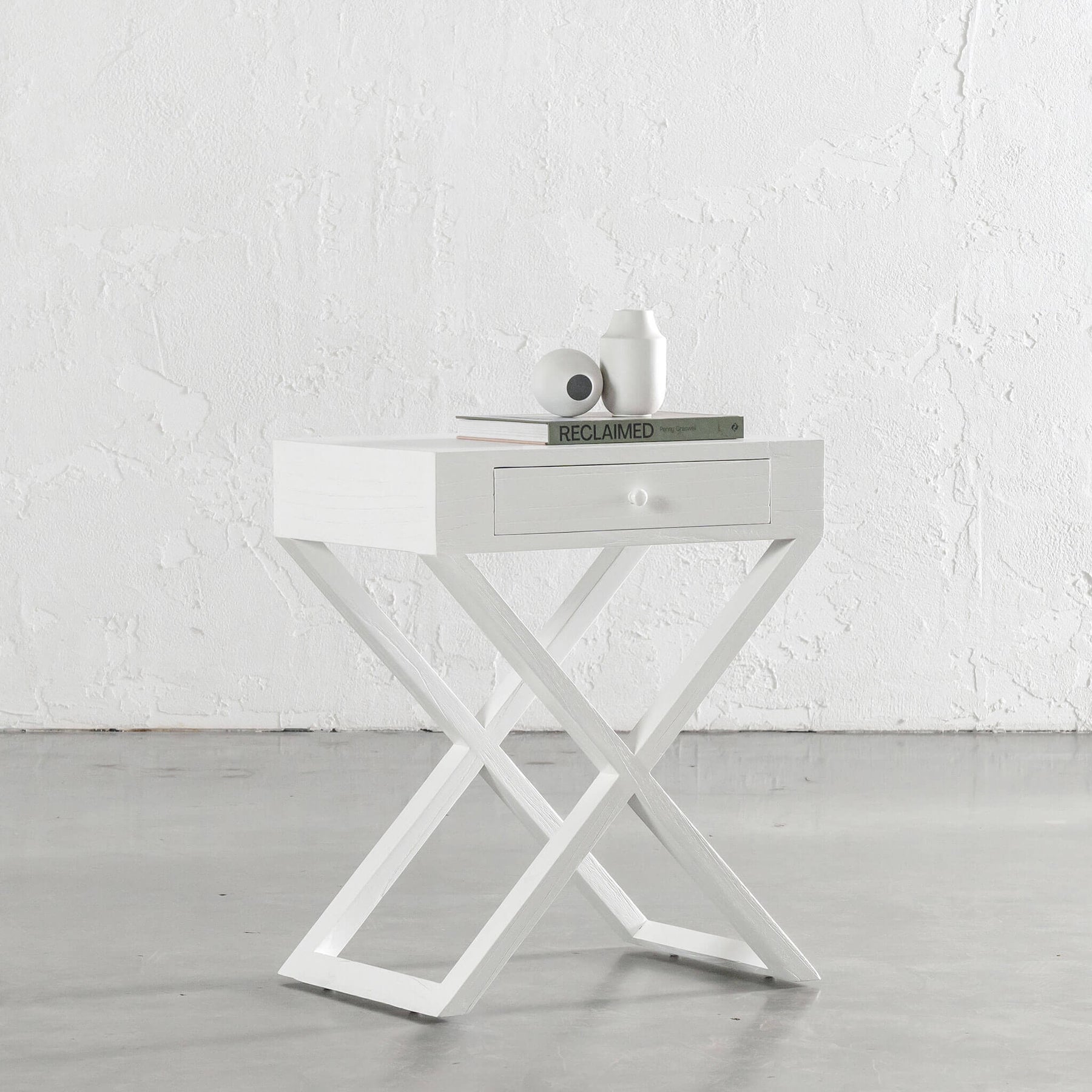 AMARA MID CENTURY CROSS LEG BEDSIDE TABLE | WHITE GRAIN