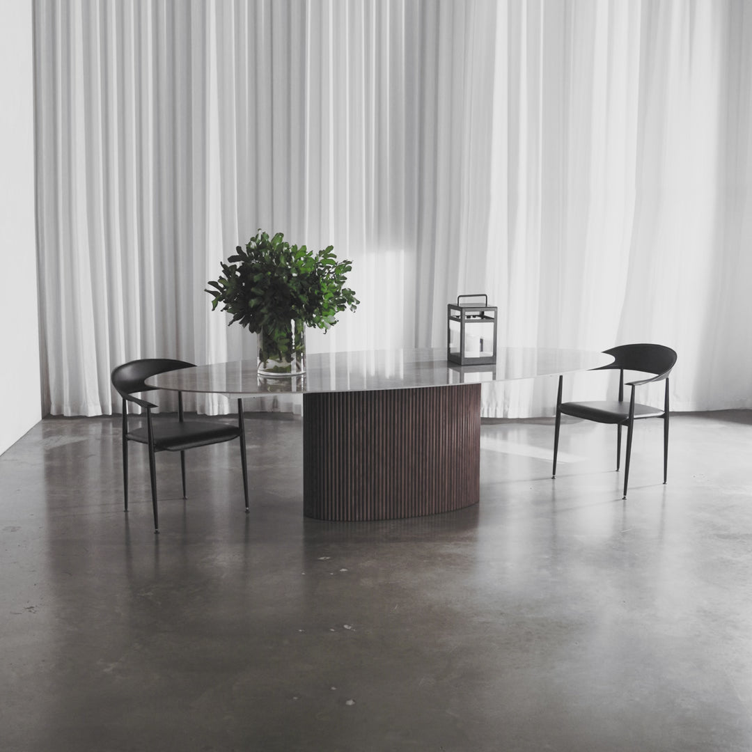 Vitolo Ceramica Dining Table | Walnut Wood Grain | Valentina Grigio Ceramica Top | Oval 260cm + Donato DiningChair | Noir Black