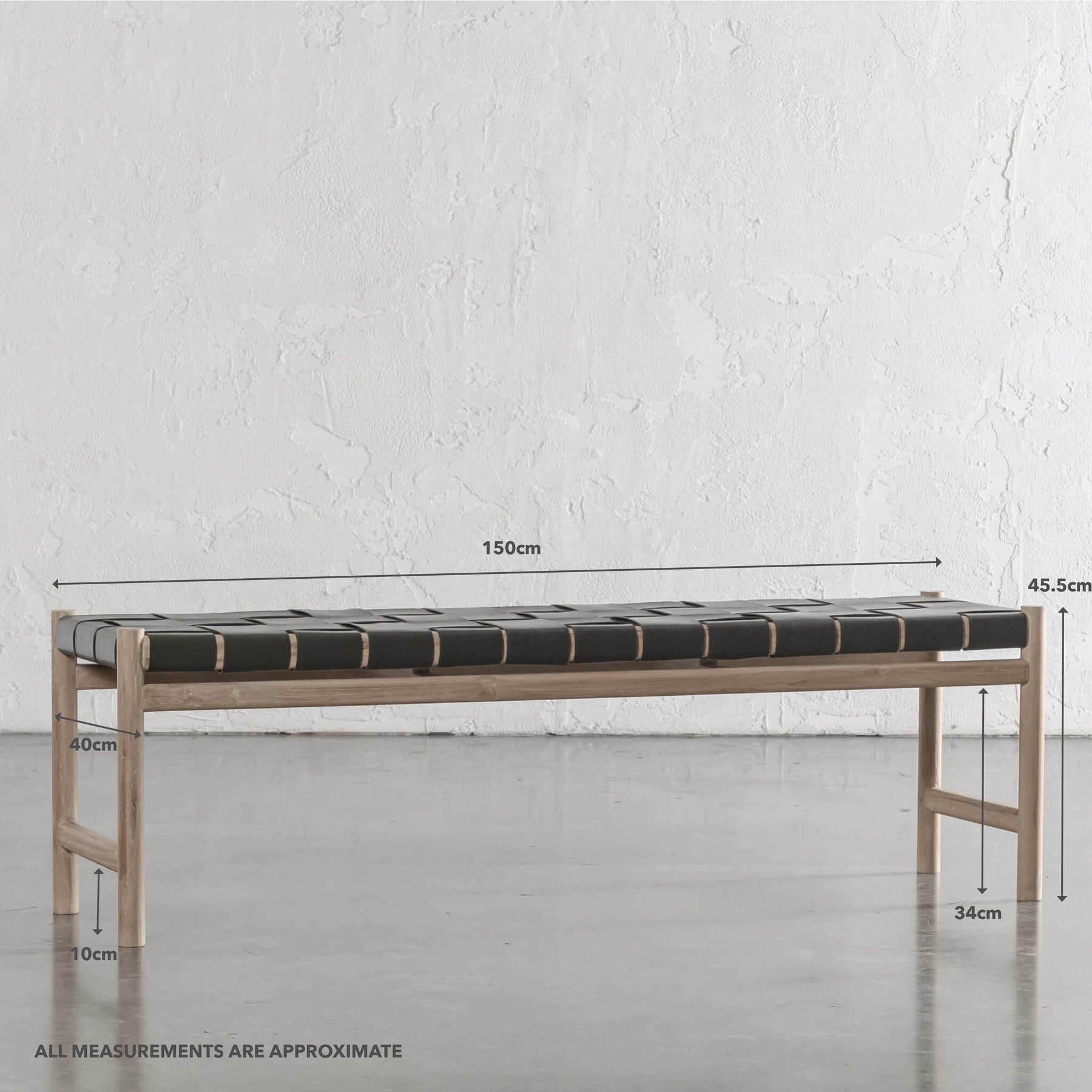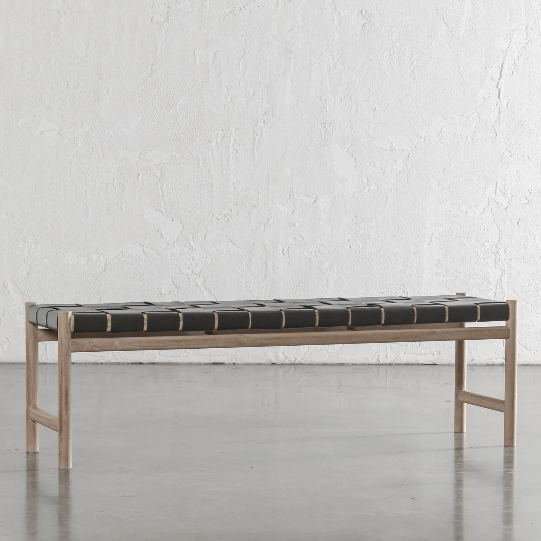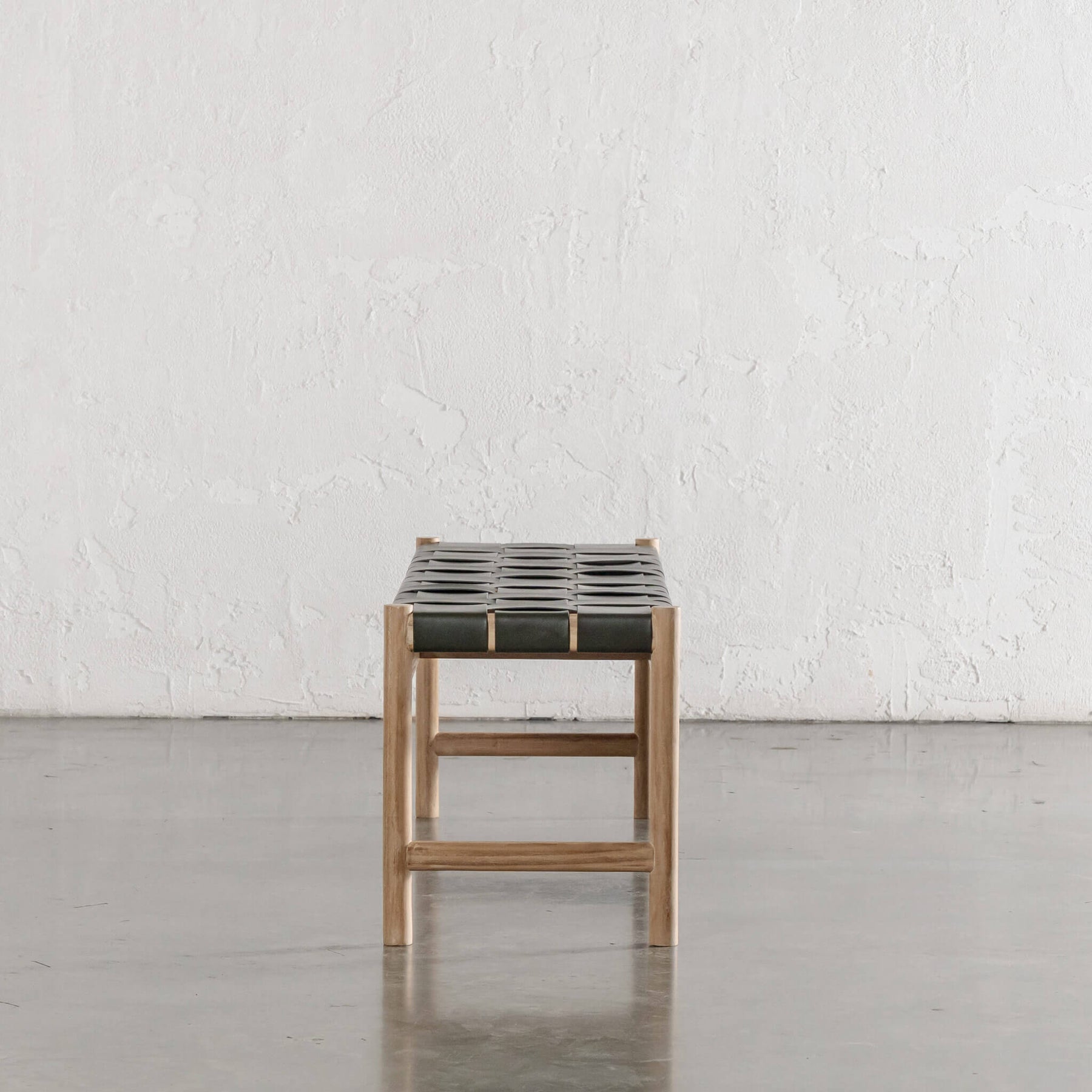 MONTERO WOVEN LEATHER BENCH | OLIVE LEATHER HIDE