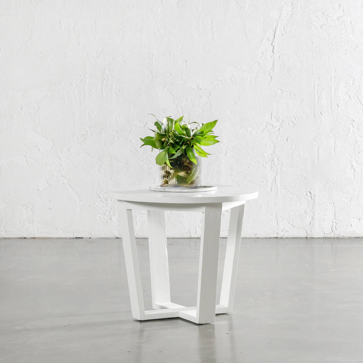 AMARA MID CENTURY TIMBER TERRACE SIDE TABLE | SOLID TOP WHITE | ROUND