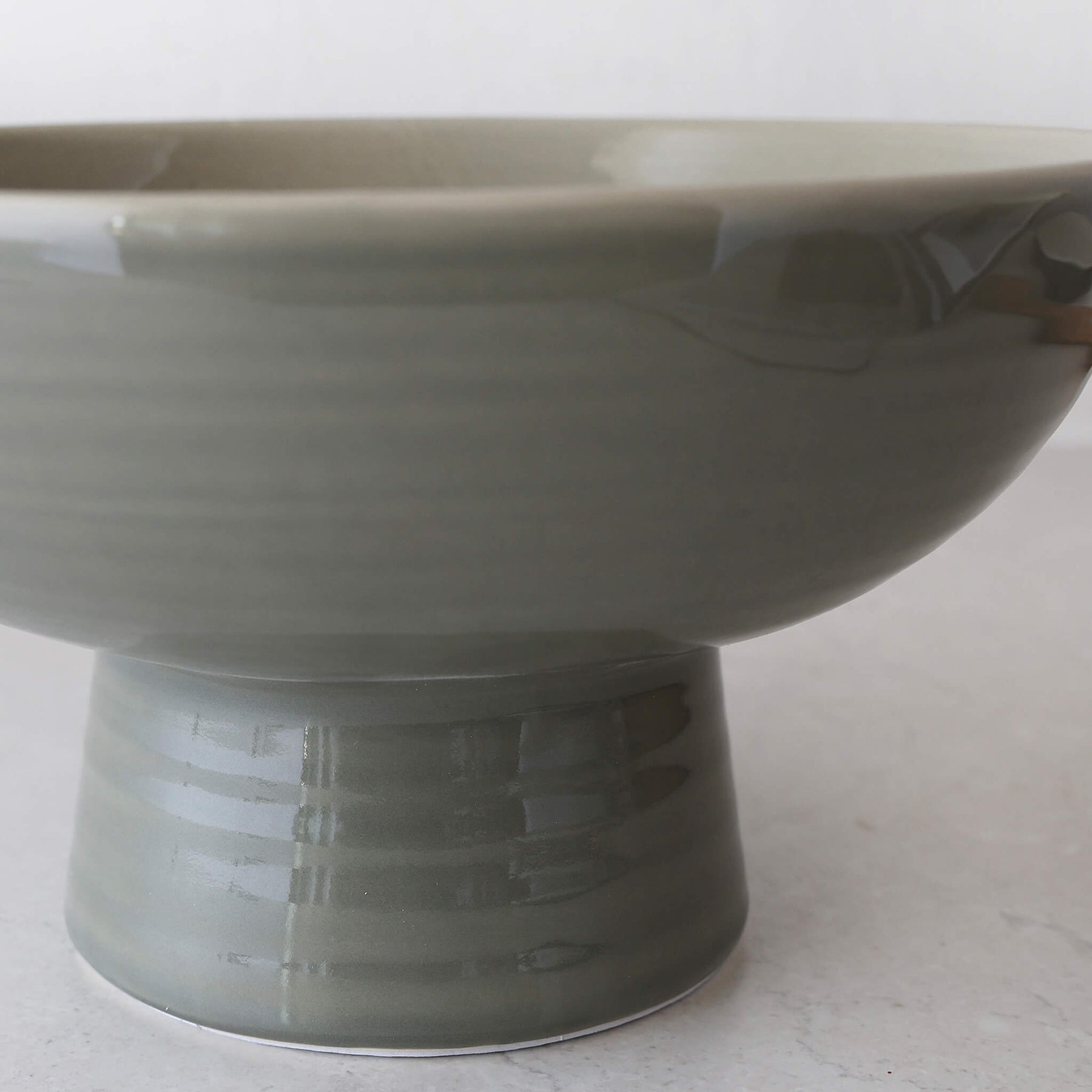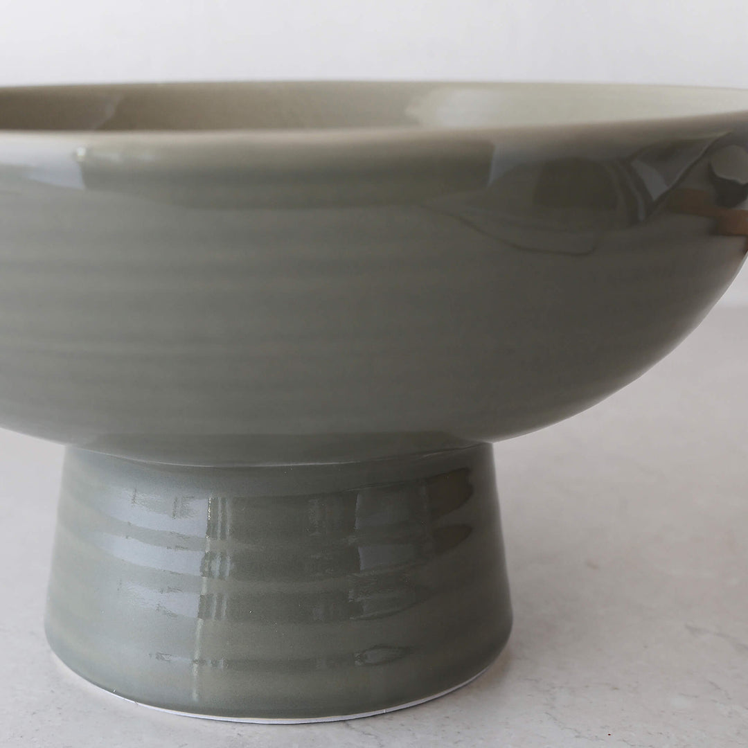 CERAMIC PEDESTAL BOWL | SAGE GREEN CERAMIC