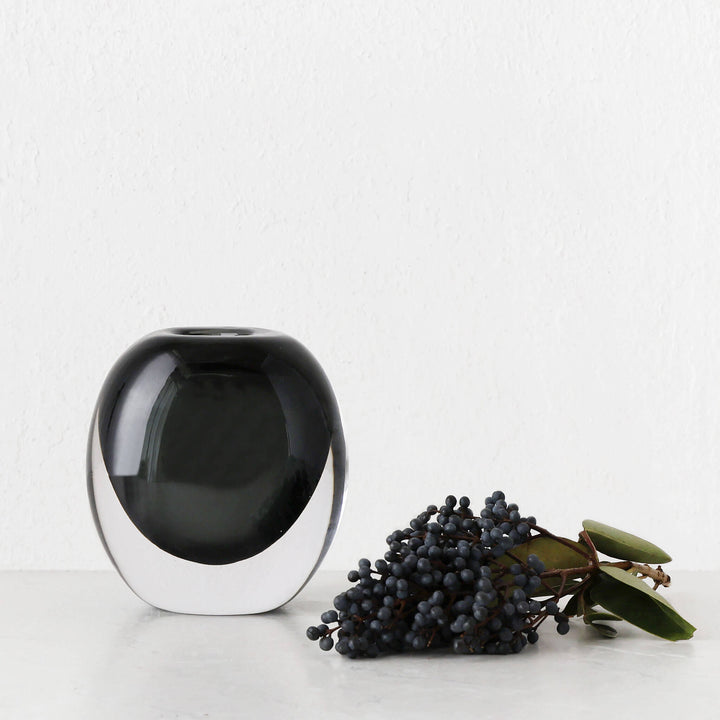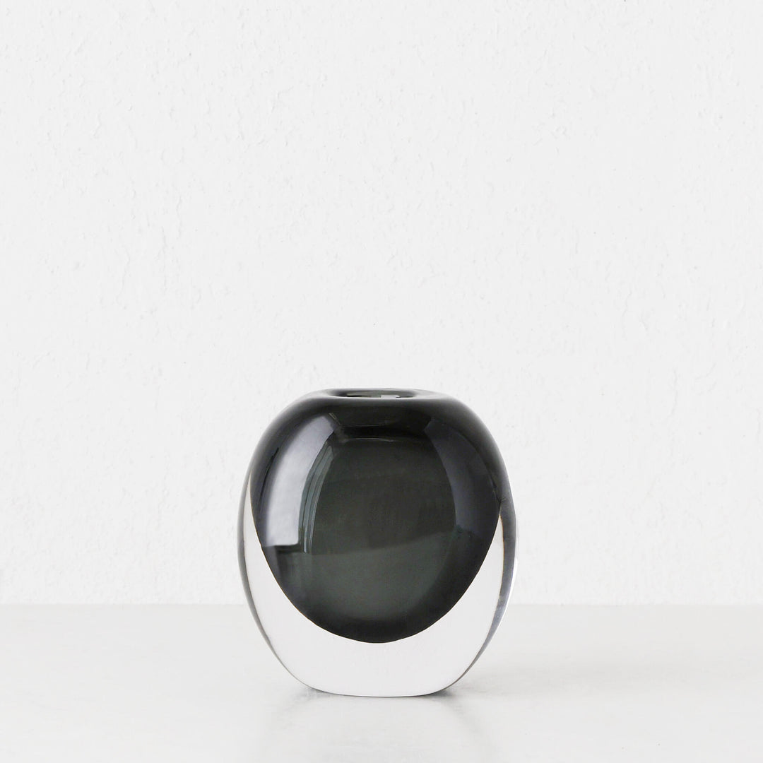 LIVING BY DESIGN EXCLUSIVE | HANS HAND BLOWN VASE | CHARCOAL + CLEAR GLASS