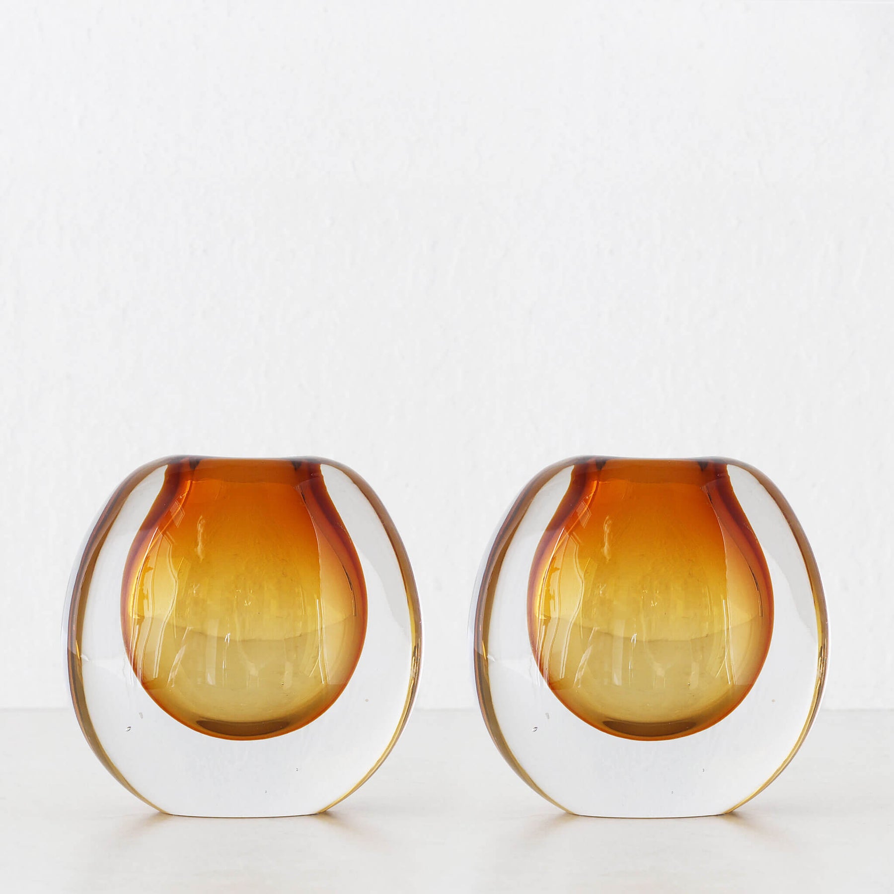 LIVING BY DESIGN EXCLUSIVE | HANS HAND BLOWN VASE BUNDLE X2 | AMBER + CLEAR GLASS