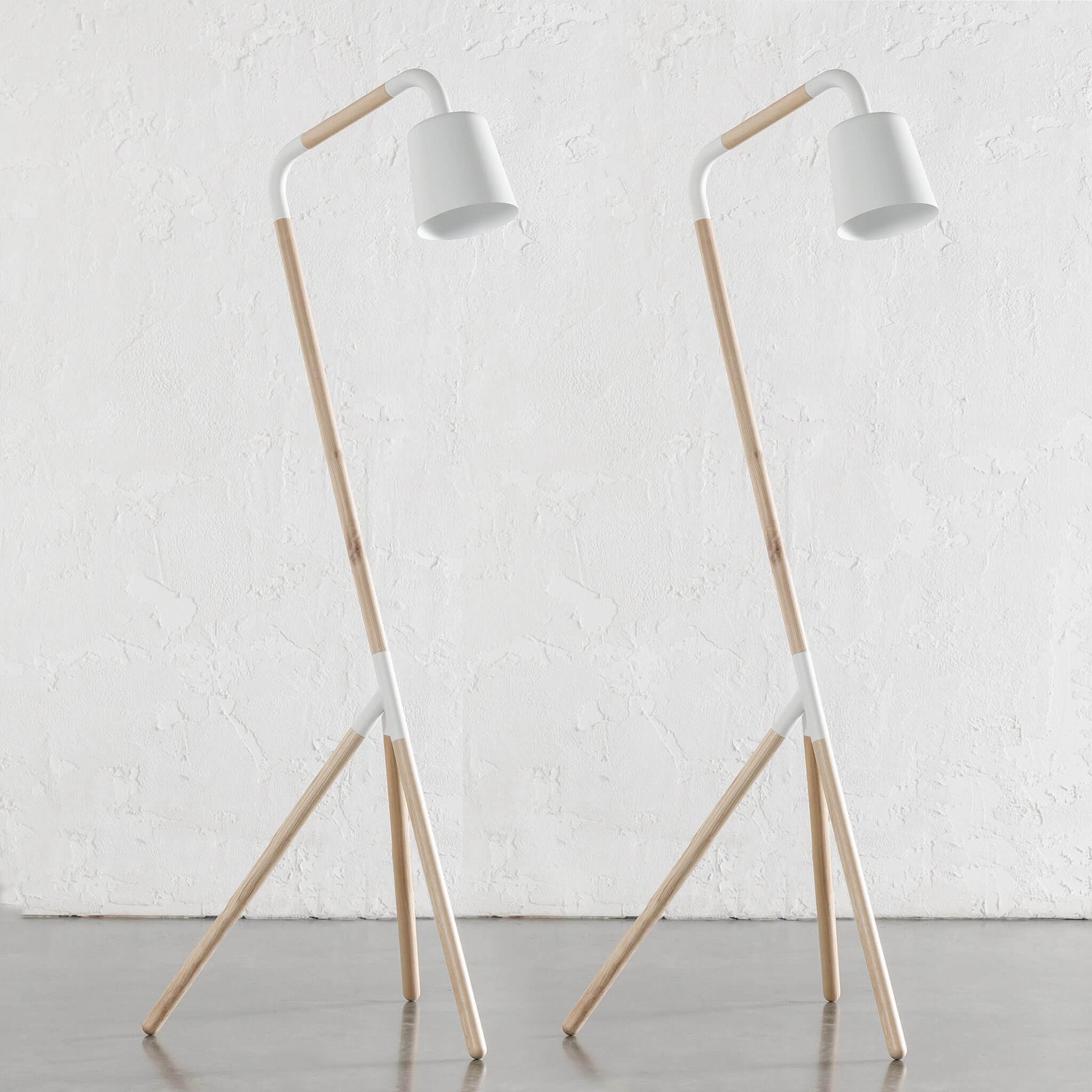 HOPPER FLOOR LAMP | WOOD + WHITE | BUNDLE X 2