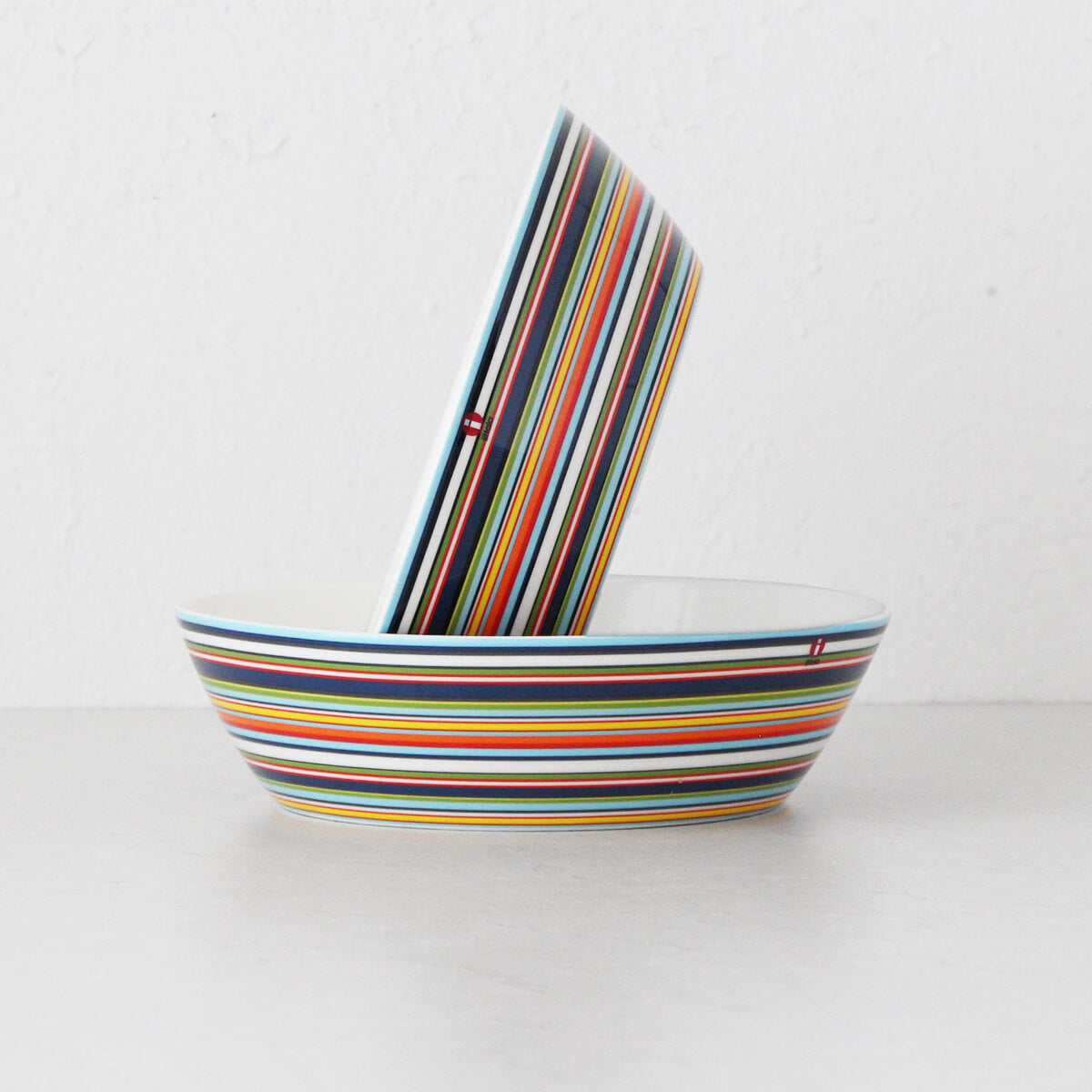 The vibrant striped patterns of the Iittala Origo collection offer a lively and colourful accent to any setting, adding a dynamic flair to your decor. With their defined structure and rhythmic design, these serving bowls illuminate any occasion, turning even the simplest gatherings into memorable events.