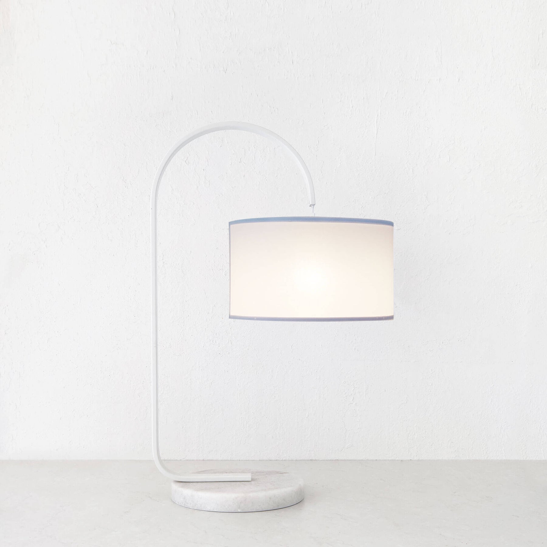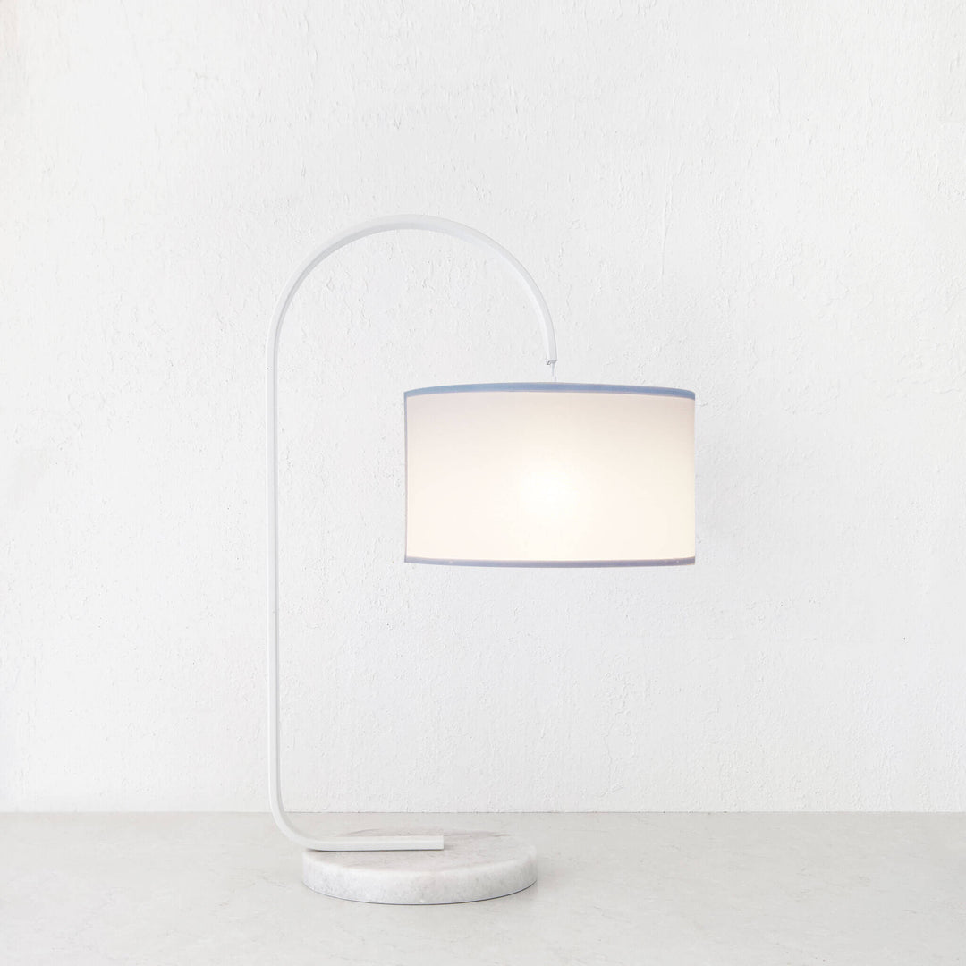 LACRES CURVED MATTE WHITE TABLE LAMP | WHITE MARBLE | WHITE LINEN SHADE