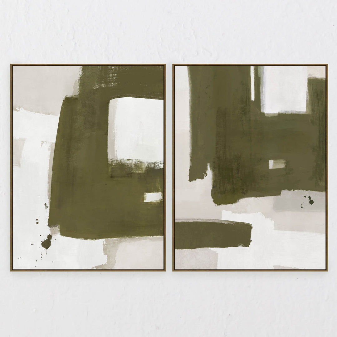 LBD EXCLUSIVE | OLTEN FRAMED CANVAS PRINT | SET OF 2 | 90X 120CM | OLIVE + NATURAL | OAK NATURAL FRAME