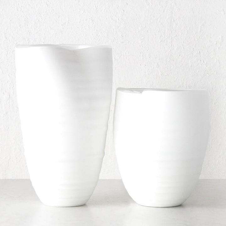 LIVING BY DESIGN EXCLUSIVE | BRAC GLASS VASE BUNDLE X2 | M + L | MATTE WHITE GLASS
