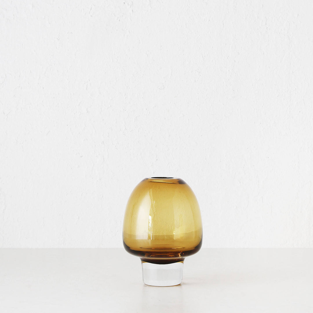 LIVING BY DESIGN EXCLUSIVE  |  PRELLI HAND BLOWN GLASS VASE | MEDIUM  |  AMBER GLASS