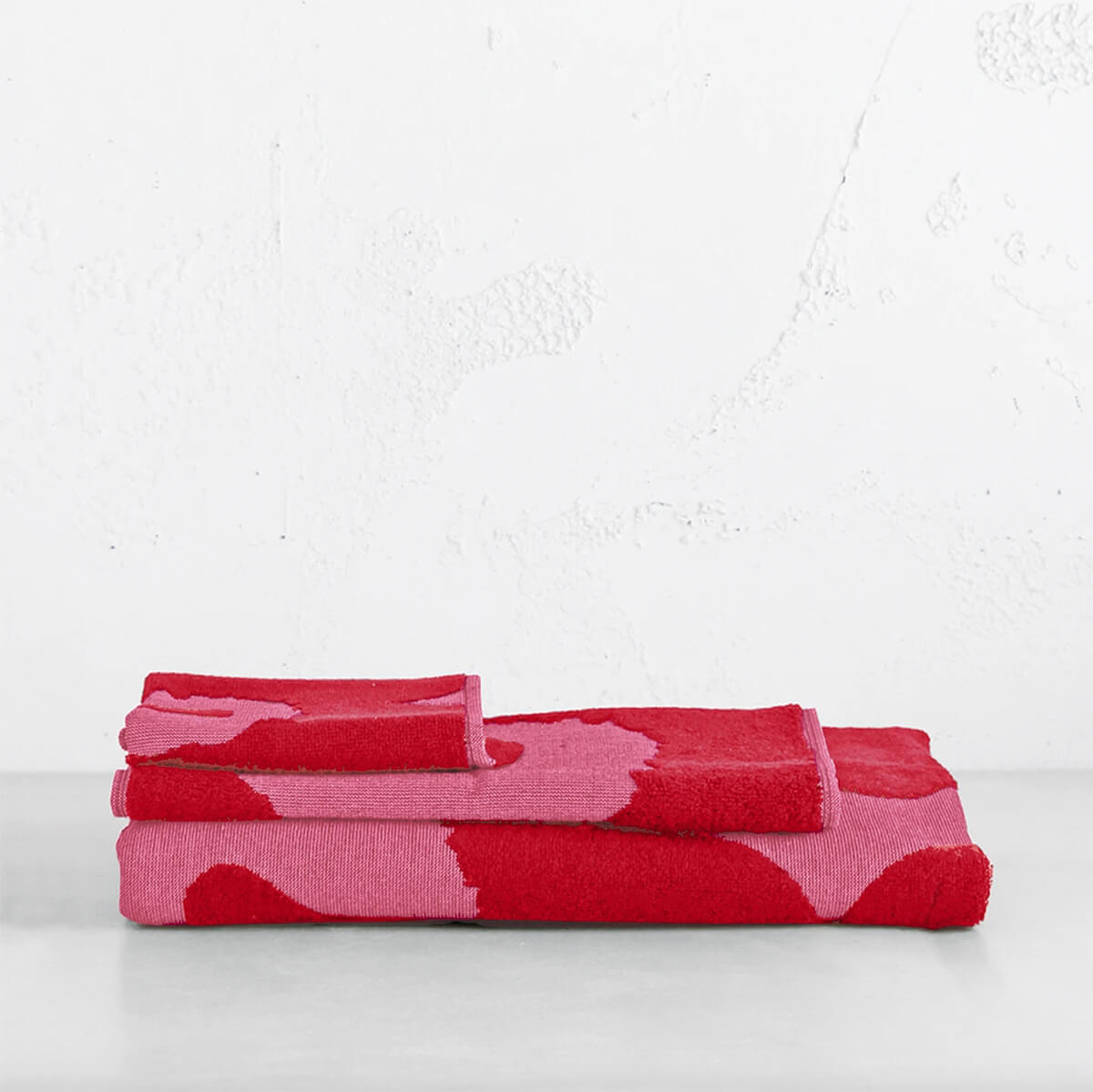 MARIMEKKO | UNIKKO BATH TOWEL BUNDLE SINGLE | RED + LIGHT PINK