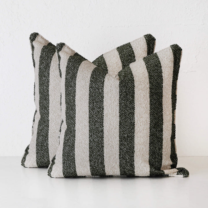 NAPOLI CUSHION BUNDLE X2 | 50X50 | BLADE OLIVE + NATURAL STRIPE