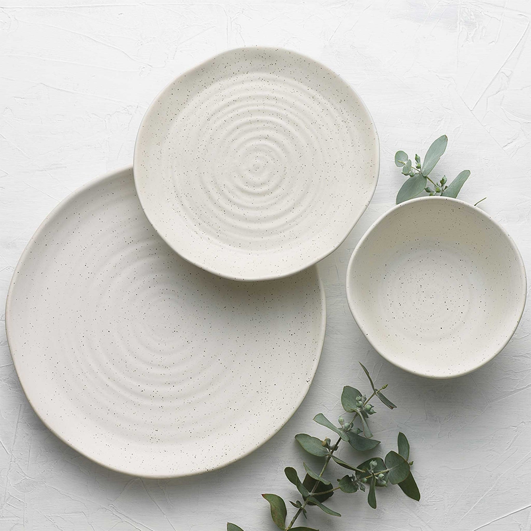 Inspired by the natural textures of the Australian landscape, the boxed Ecology Ottawa 12 piece Dinner Set brings an organic elegance to your table. The gently ridged organic profile, dimpled texture + subtle speckle of each piece creates a beautifully rustic aesthetic. Designed in Australia, this 12 piece set features a soft creamy calico hue with a matte finish, offering a warm, earthy charm. Perfect for casual or formal dining, it adds a touch of understated sophistication to any occasion.